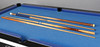 Having a blue felt and a slate bed, with four cues, a set of snooker balls, 214cm wide 122cm wide 78cm high.