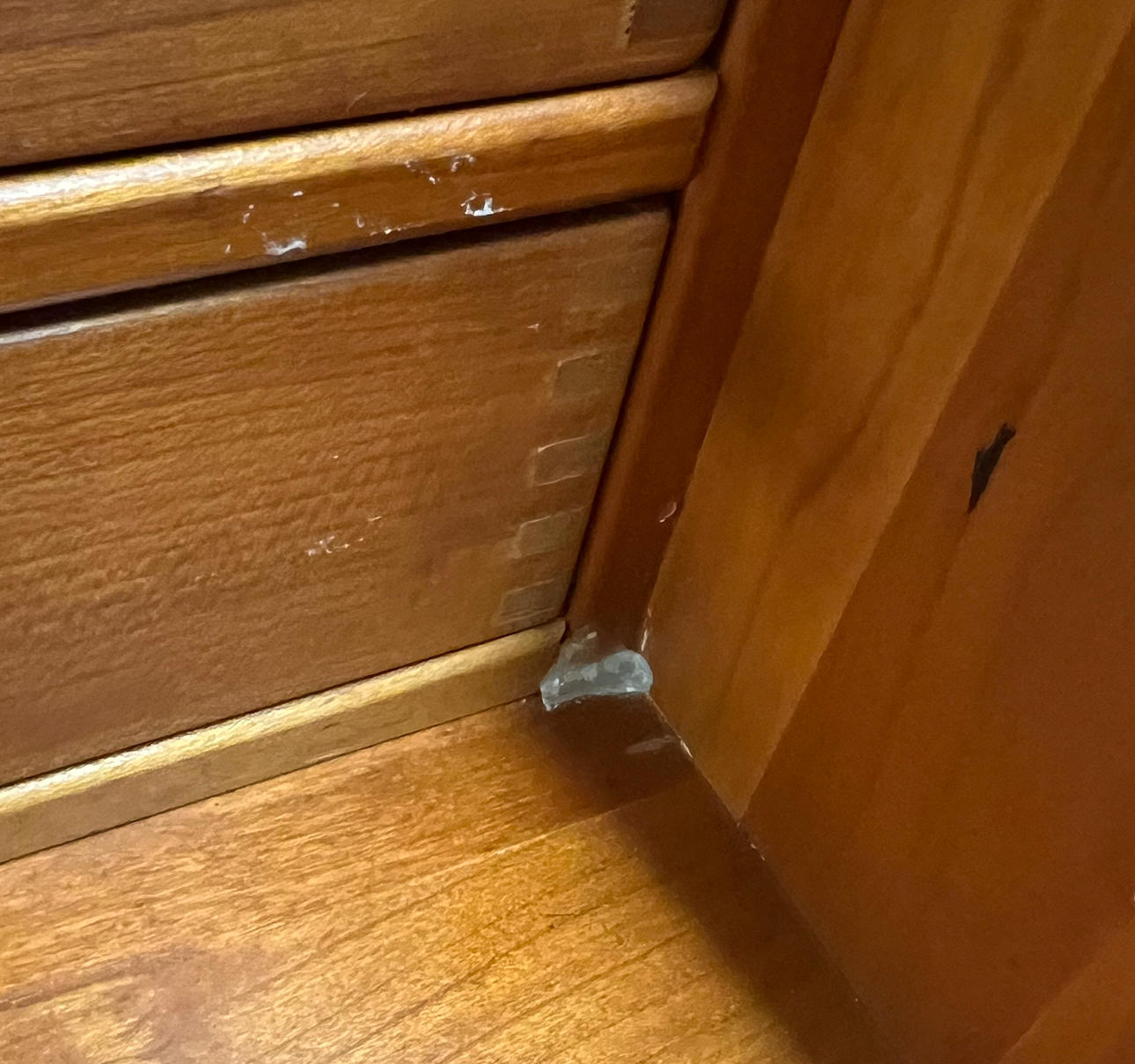 There must be a sticky residue in a corner.