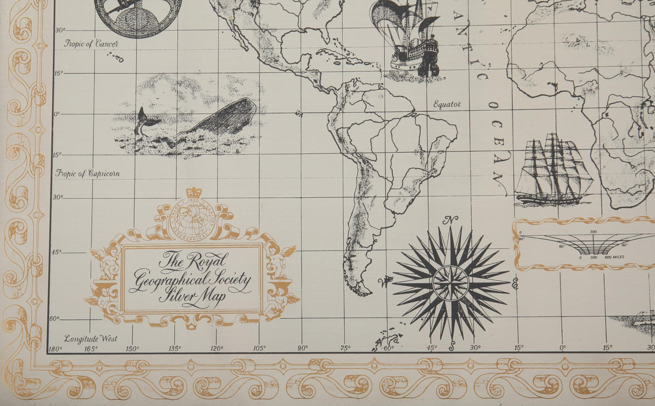 WORLD MAP, “The Royal Geographical Society Silver Map”, sterling silver.