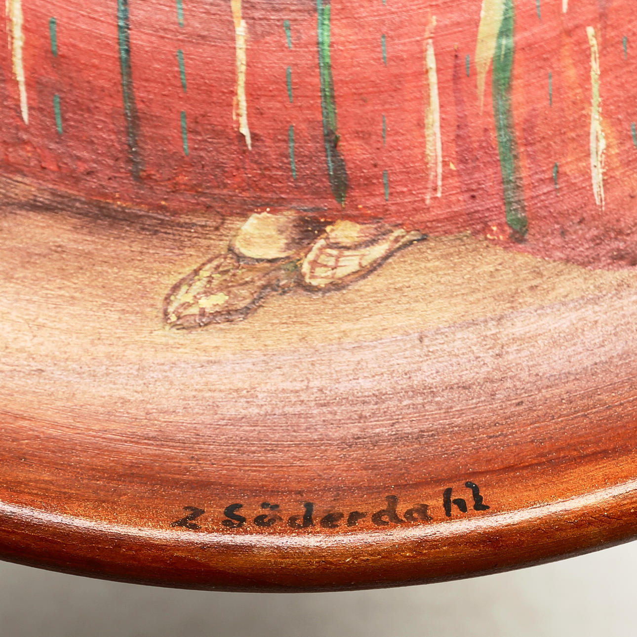 OIDENTIFIERAD KONSTNÄR. A ceramic wall plate, painted with oil paint, signed Söderdahl.
