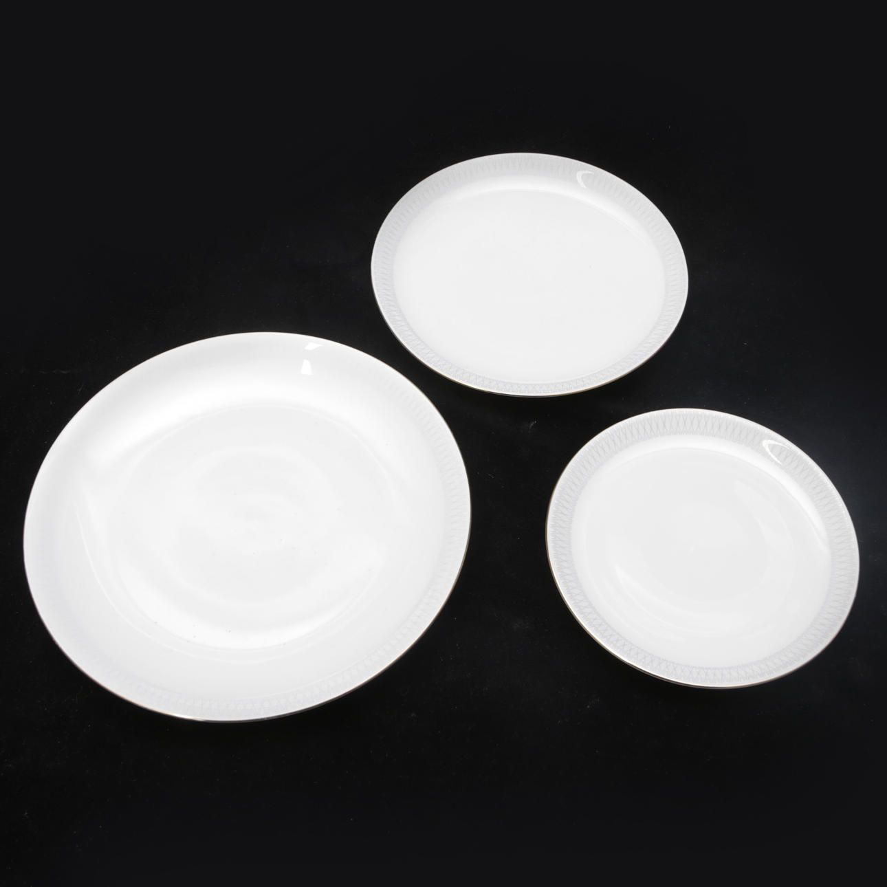 dinner plates 10 pcs, deep 12 pcs, side dishes 10 pcs, smaller side dishes 10 pcs, other parts 7 pcs.