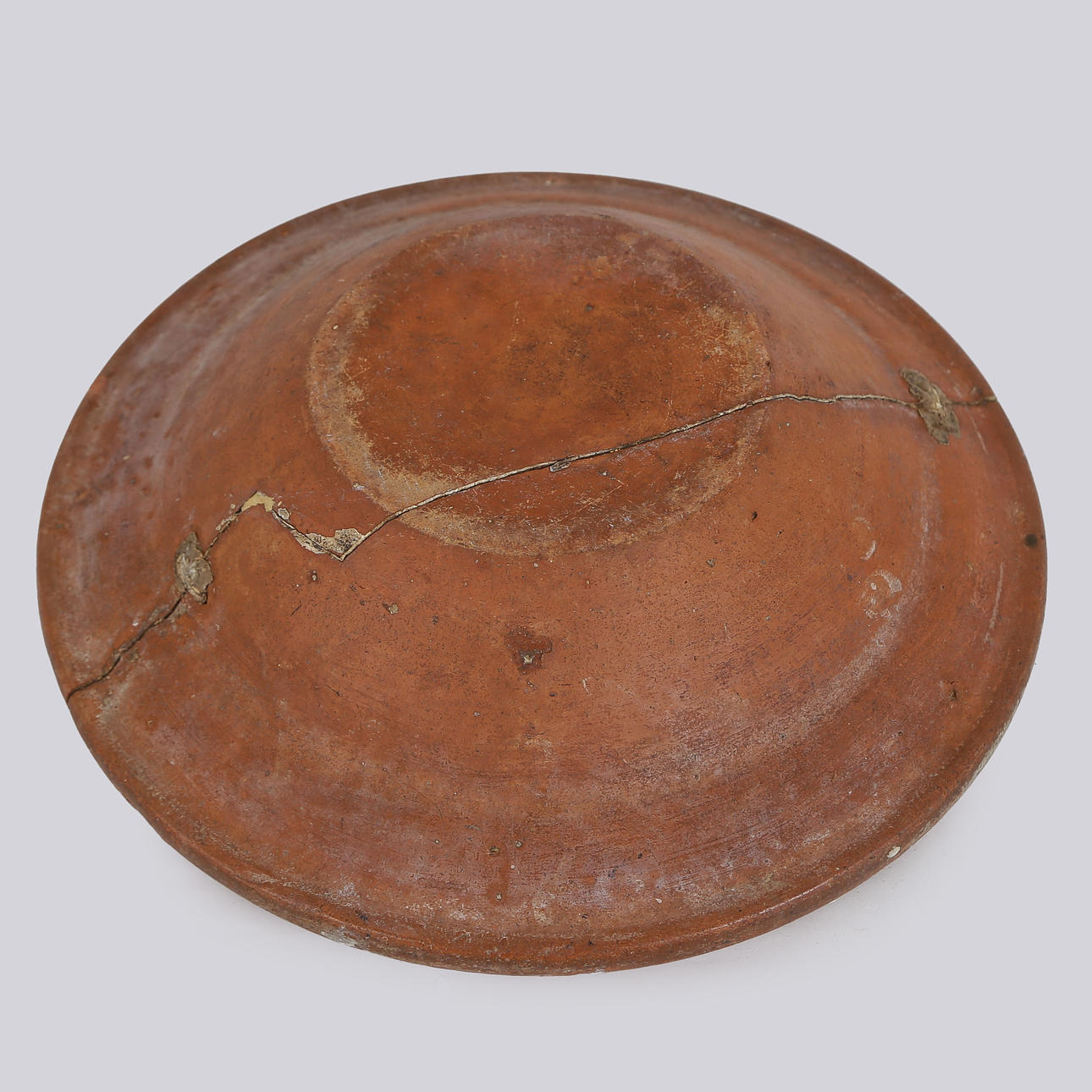 Age wear, repairs, edge chipping, crack.
