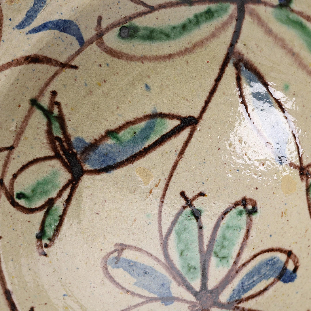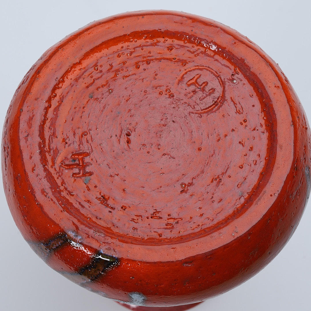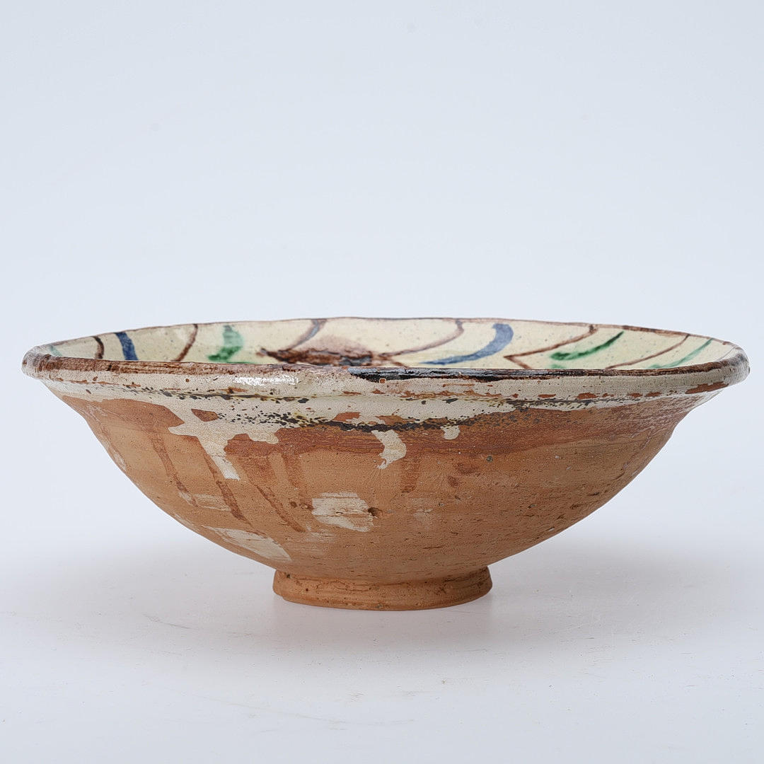 Inside glazed earthenware bowl, height 10 cm, diameter 26.5 cm. Glazed ceramic vase, stamped “HJH” on the underside. Height 14 cm, diameter 13 cm.
