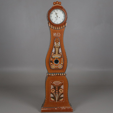 Floor clock, scratched in original colour, later part of the 18th century.