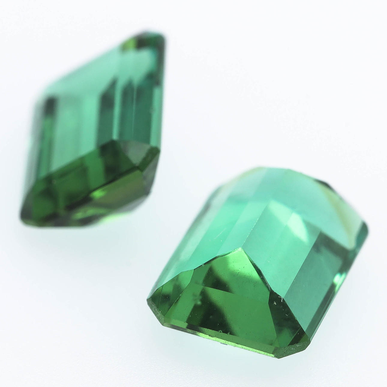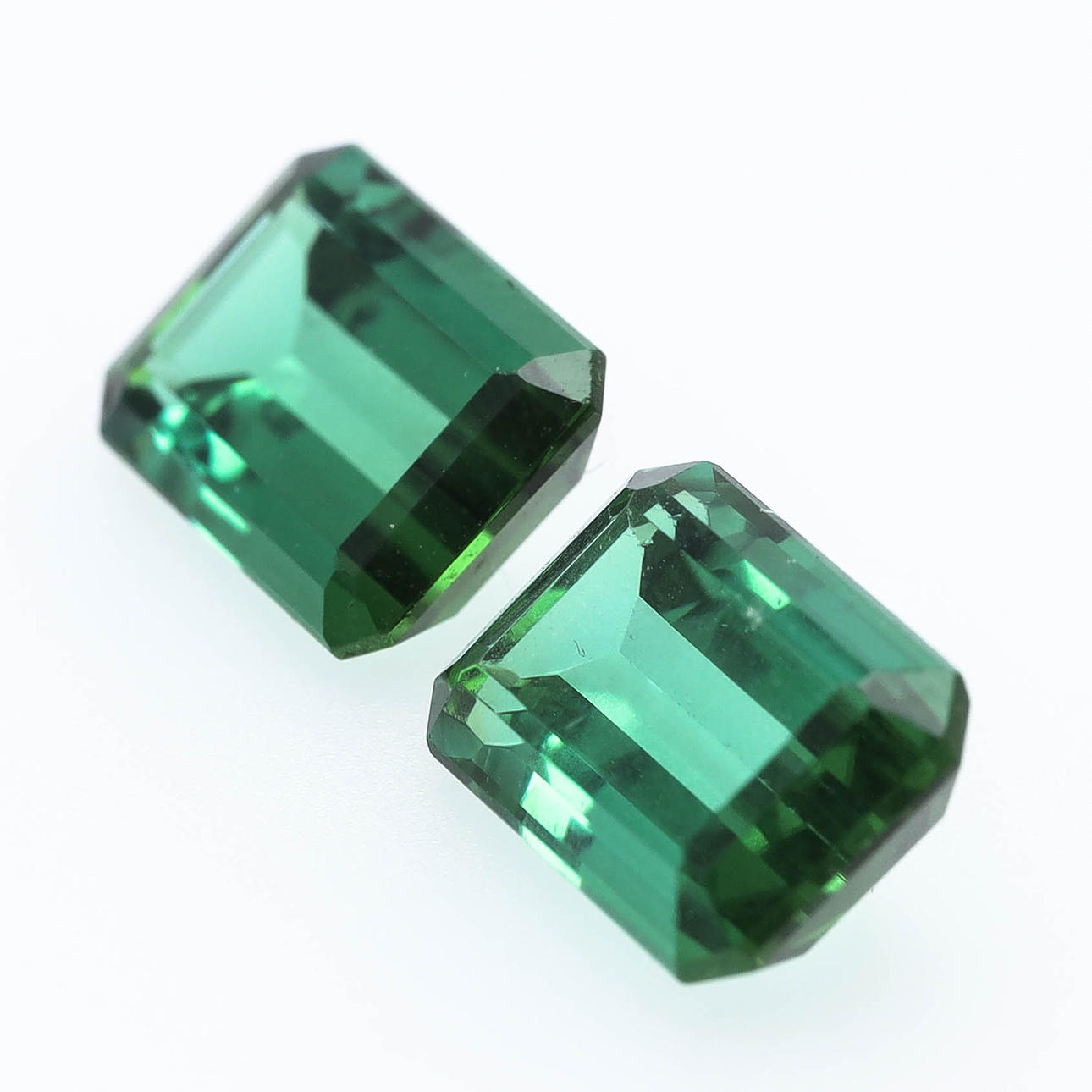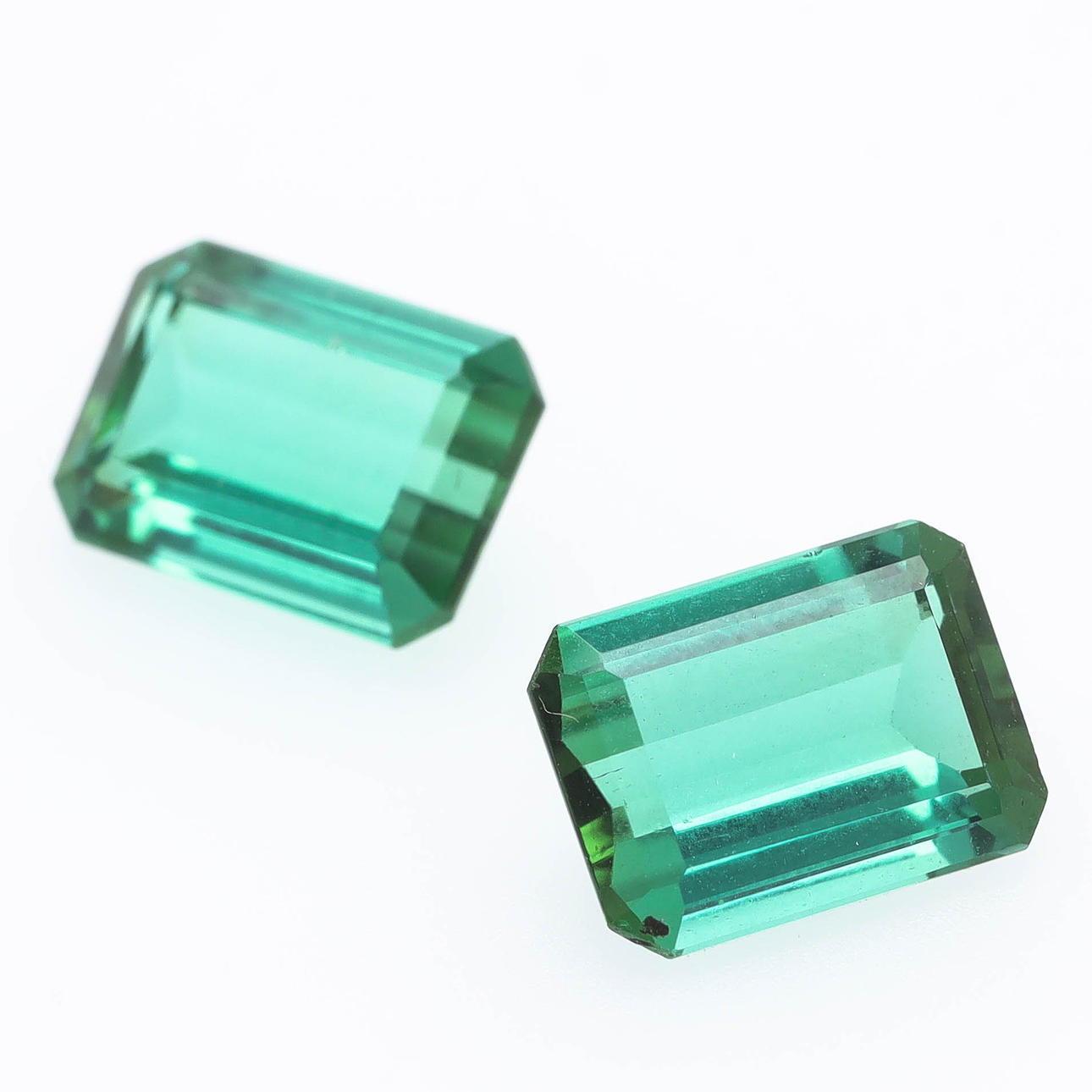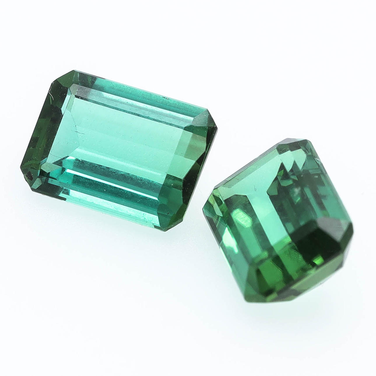 2pcs emerald cut tourmalines approx 9,1 x 6,6mm, weight 2,1ct and 2,3ct.