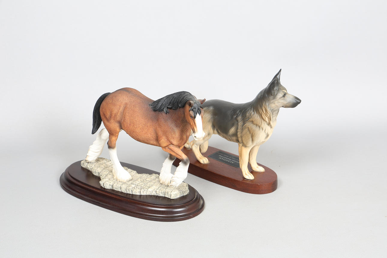 To include a #01431 Clydesdale Horse, 22cm x 31cm x 14.5cm, and and Alsatian German Sheep Dog, 22cm x 26cm x 8.5cm. (2).