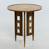 Table with several types of wood and decor. Height 54 cm, disc diameter 49 cm.