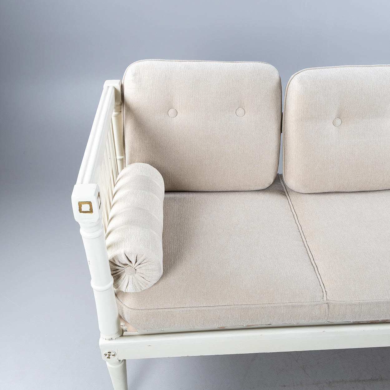 Sofa/daybed. Reupholstered pad. Back cushions included. Height 88 cm, depth 75 cm. Length 188 cm. Seat height 48 cm.