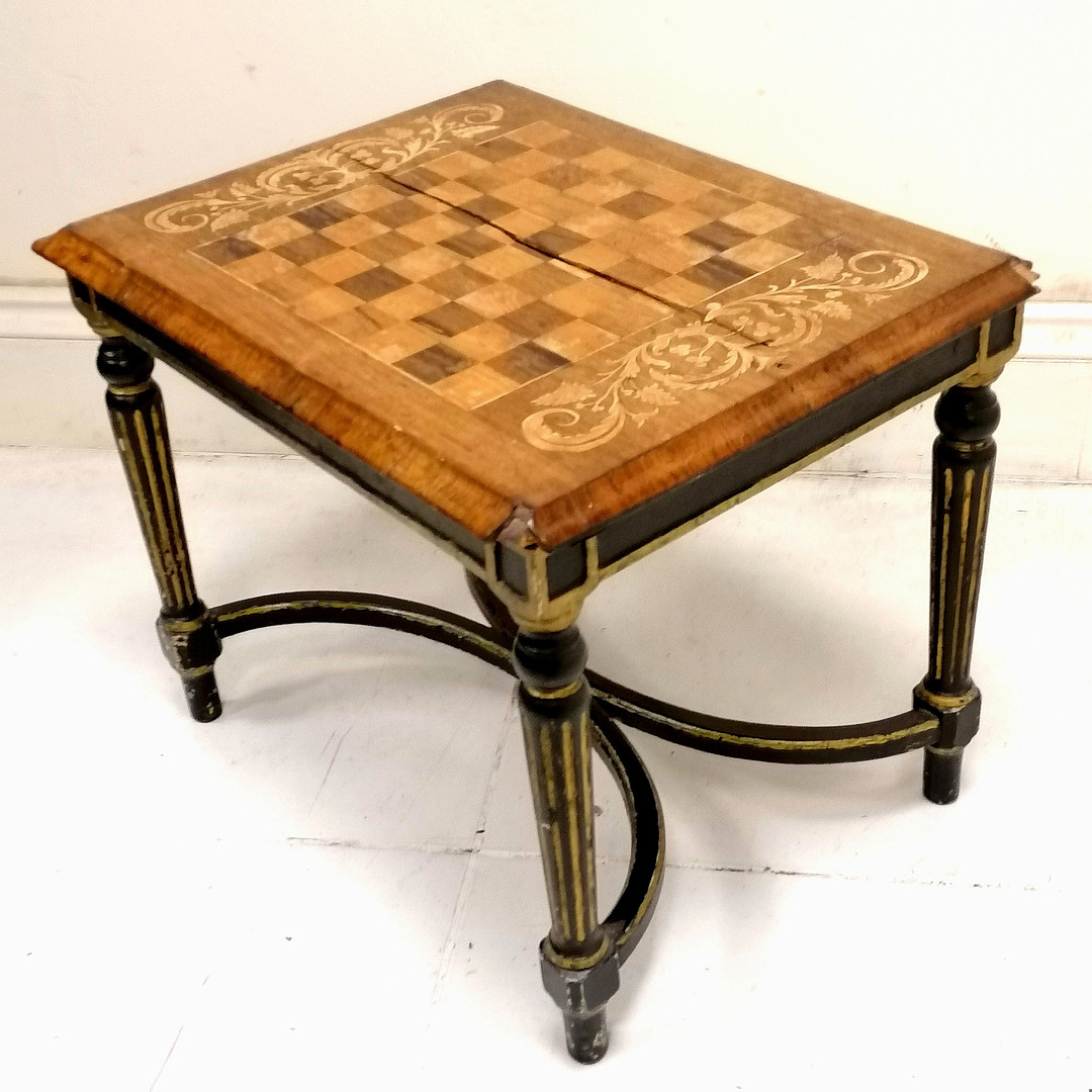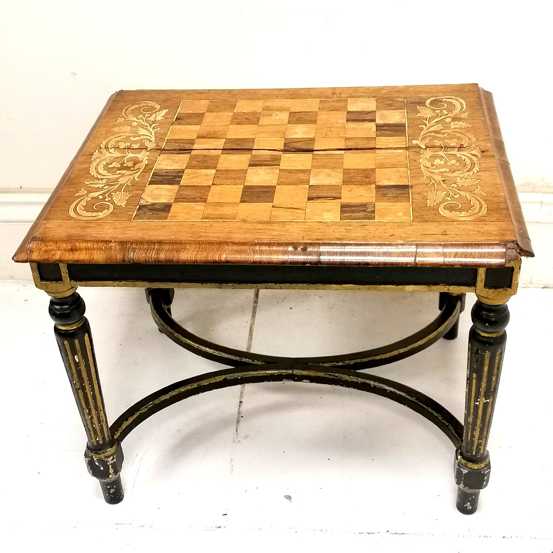 4400601. ANTIQUE CHESS BOARD TOPPED LOW TABLE.