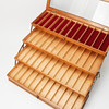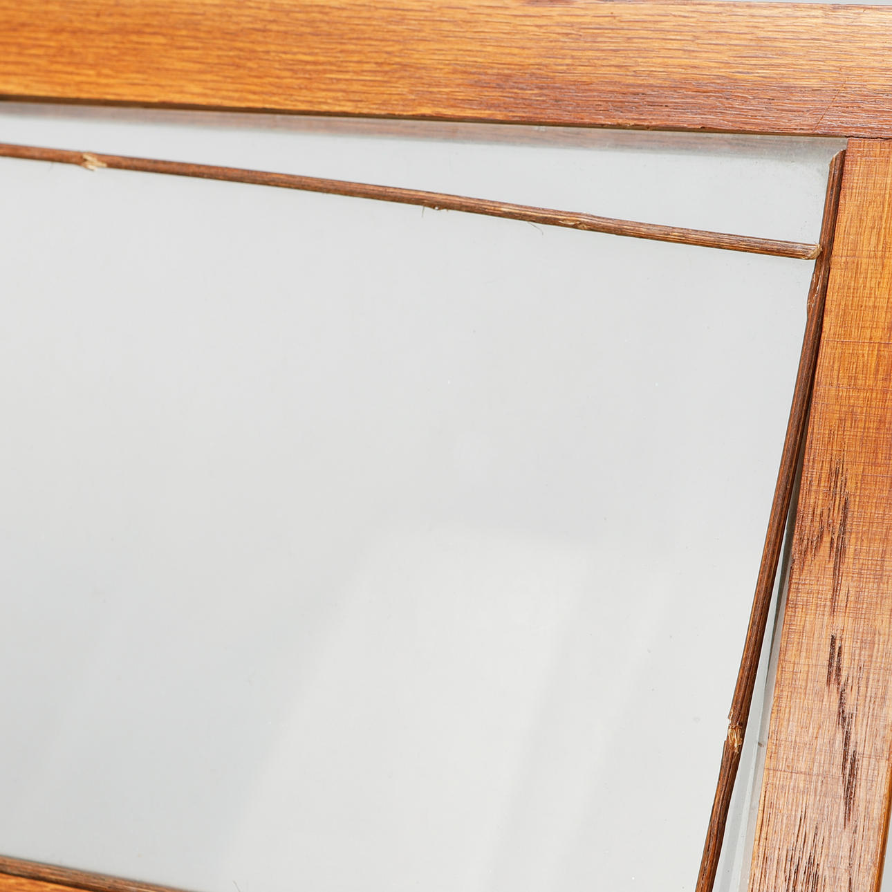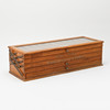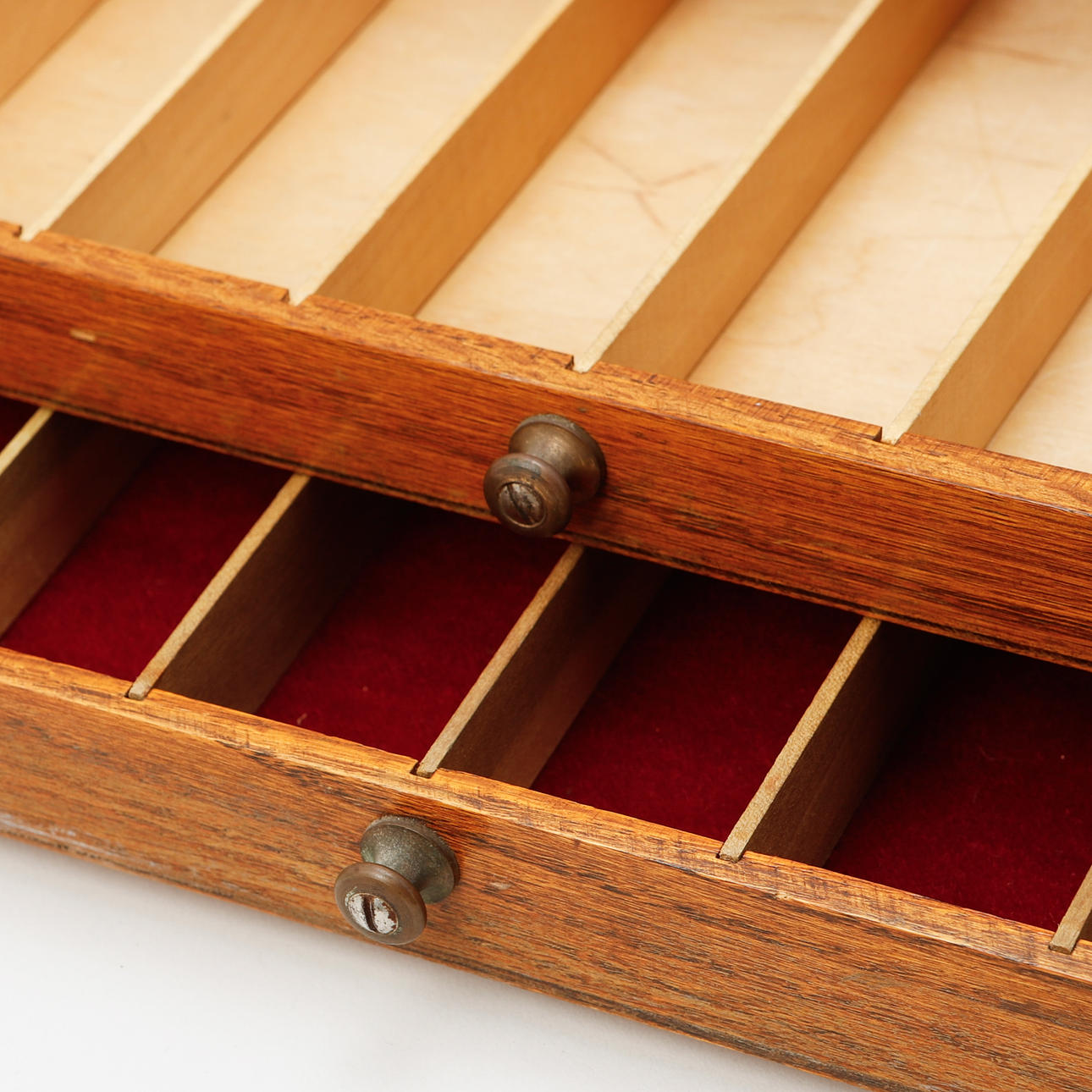 Wood and glass. Four floors and pull-out box. Dimensions approx. 56 x 20 x 16 cm.