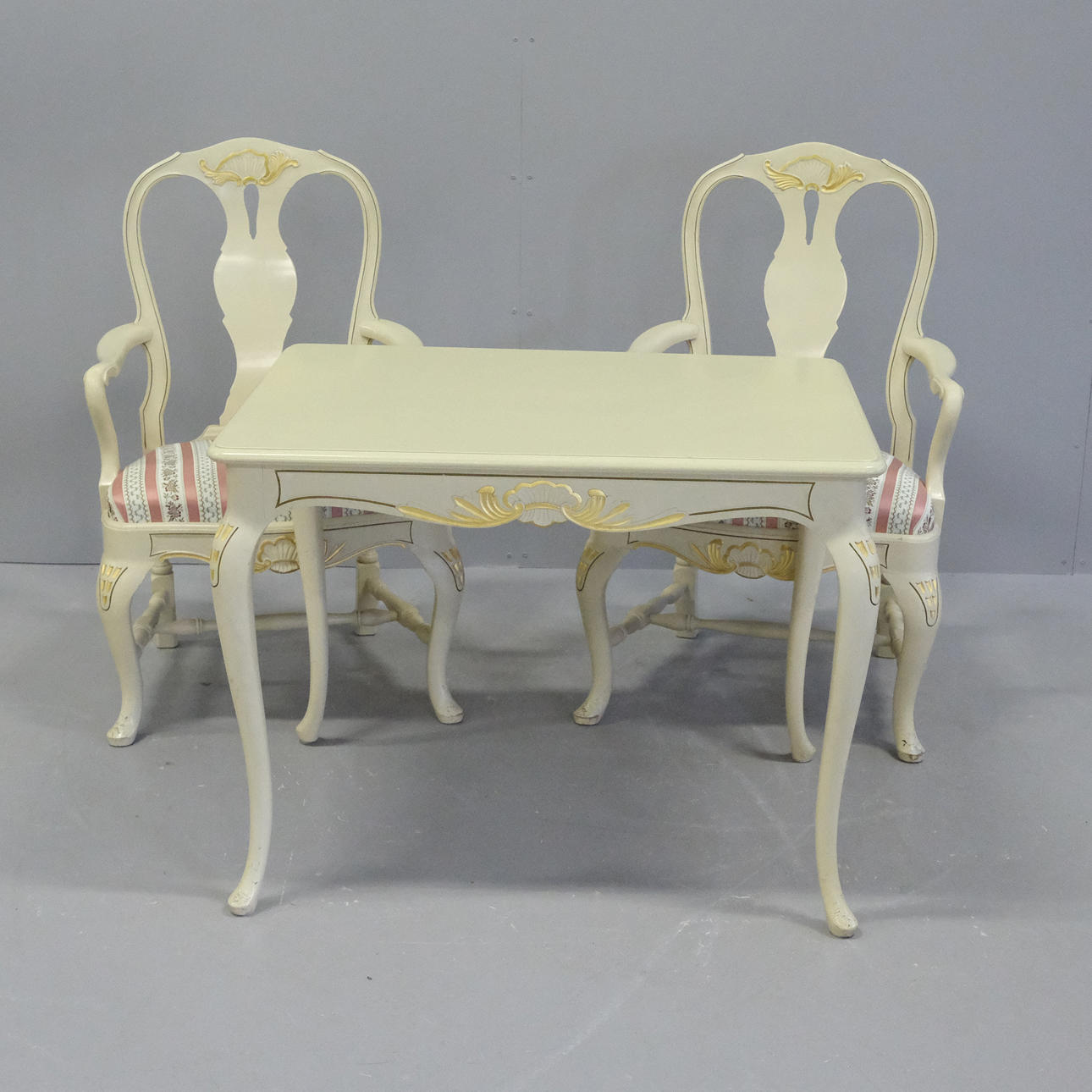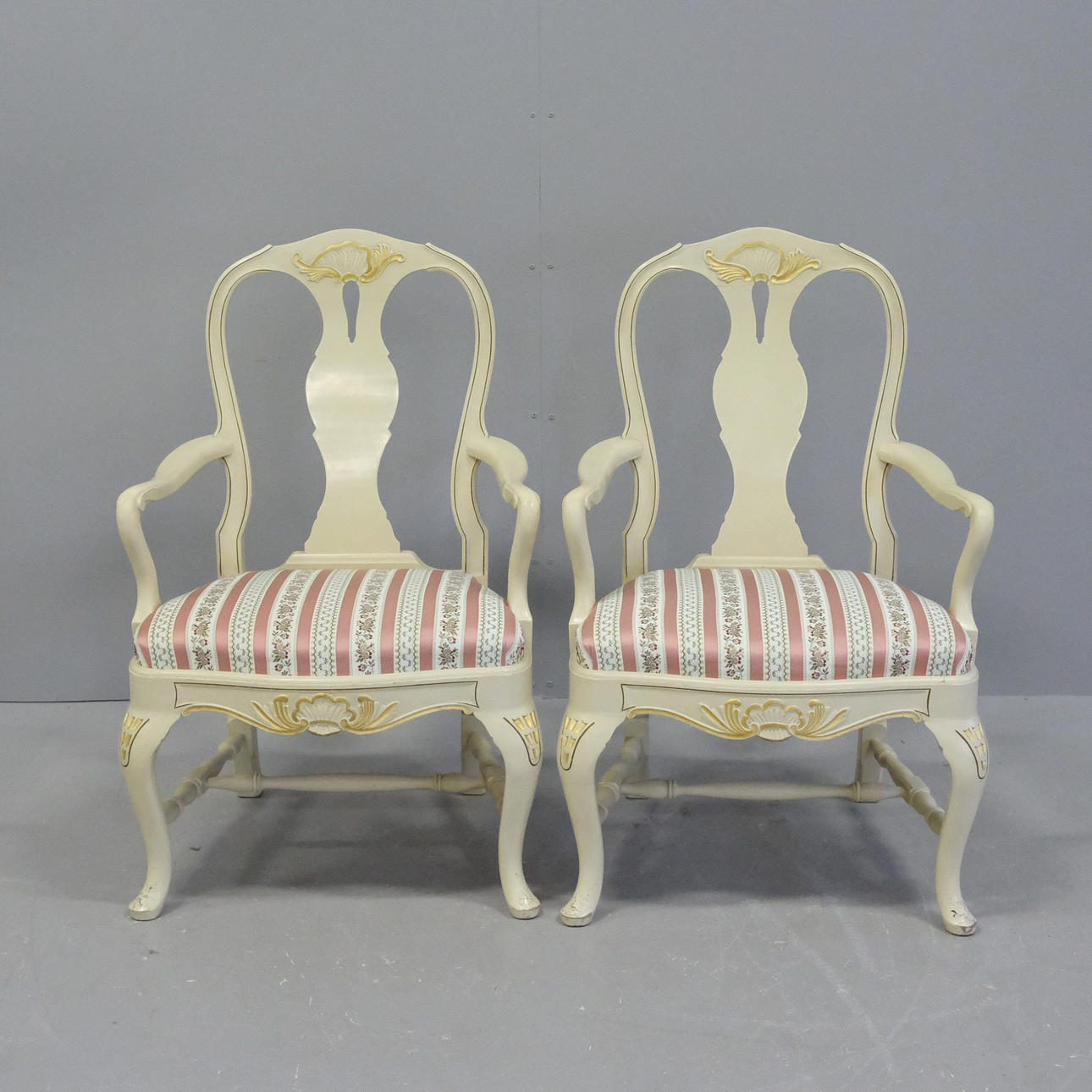 Two armchairs, height 98cm, seat height 47cm, width 62cm, depth 60cm.