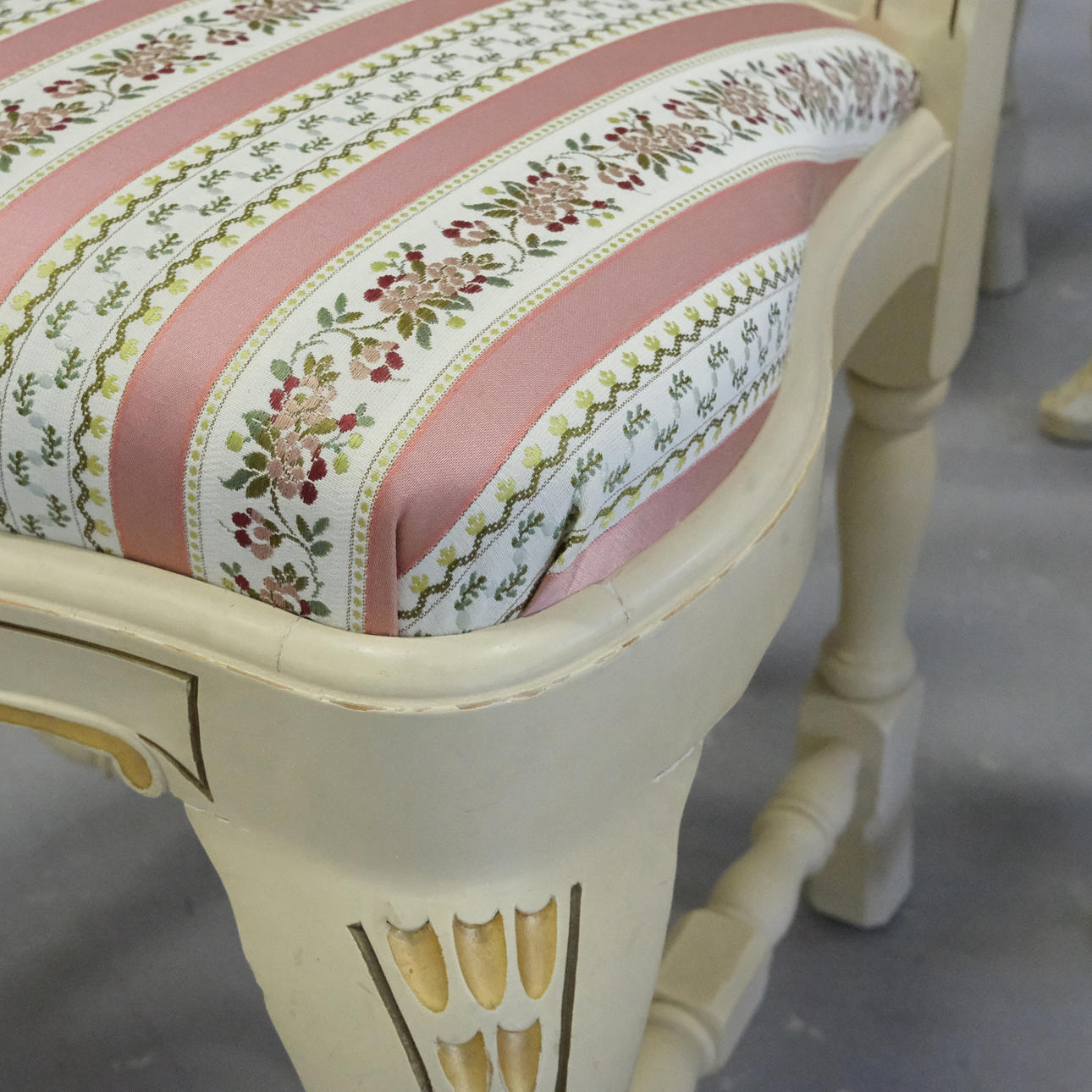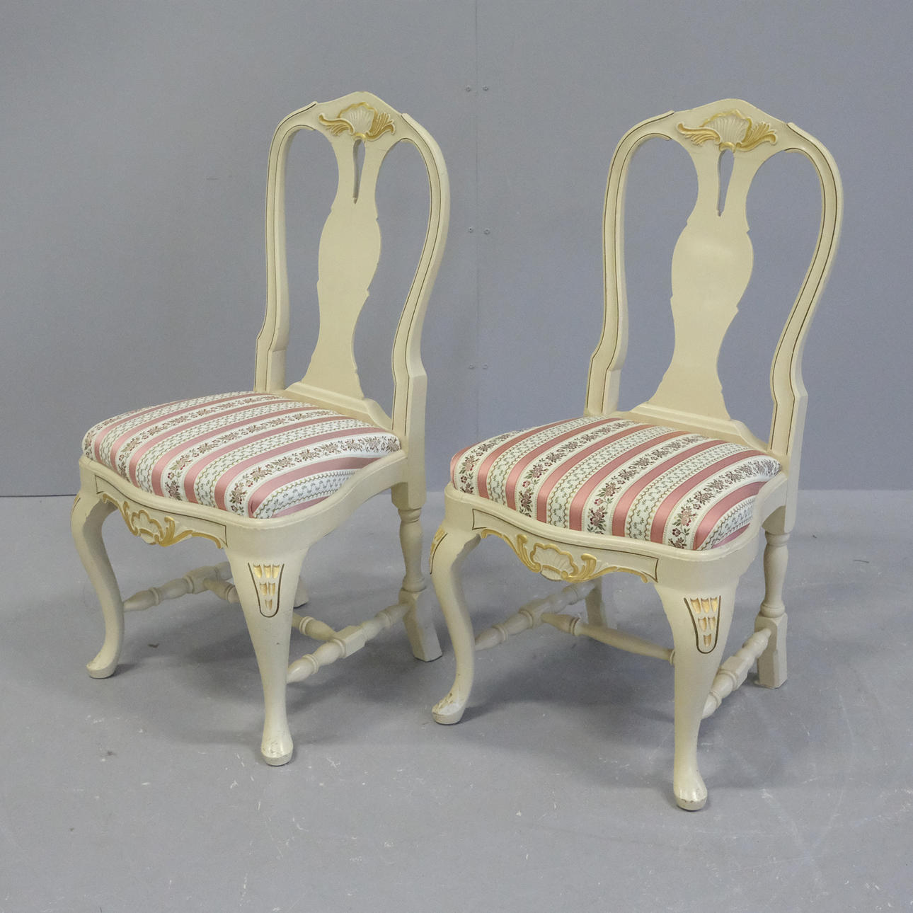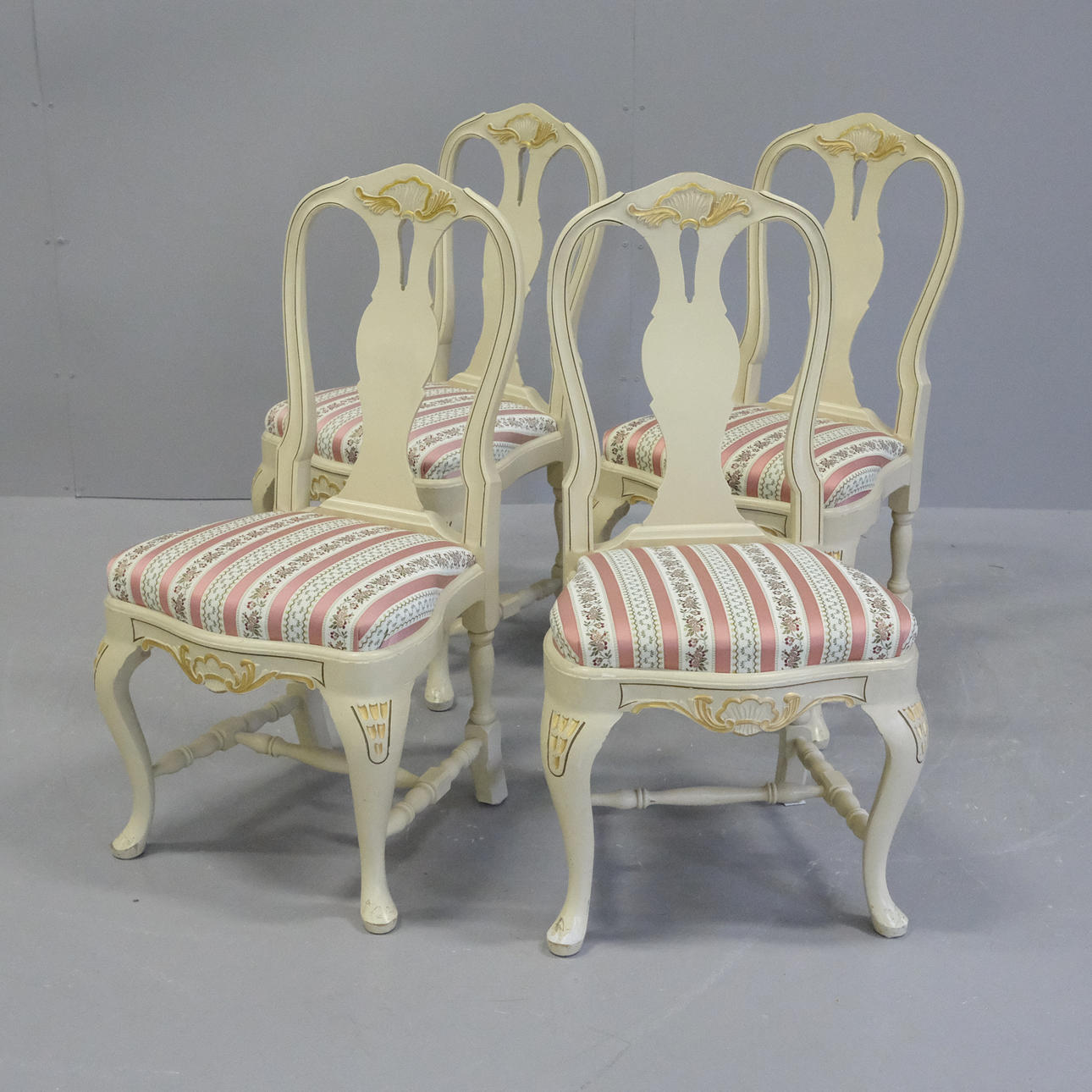 Four chairs, height 93cm, seat height 46cm, width 47cm, depth 48cm.