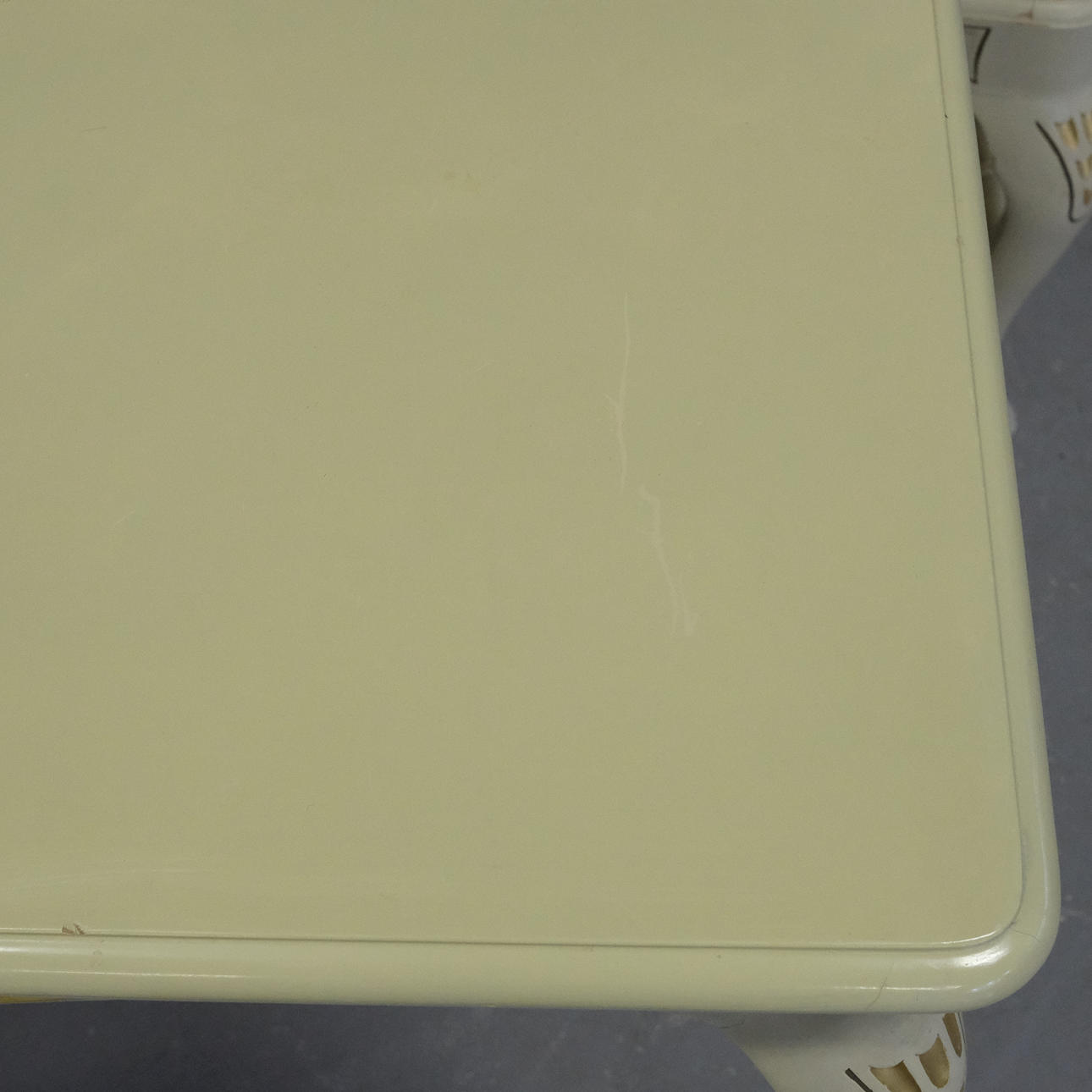 Use and surface wear. Scratches, marks, stains. Some yellowness.
