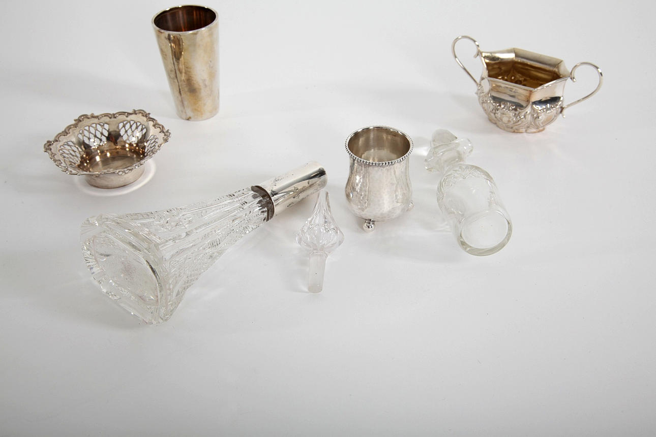 9 pieces of silver objects, 20th century.