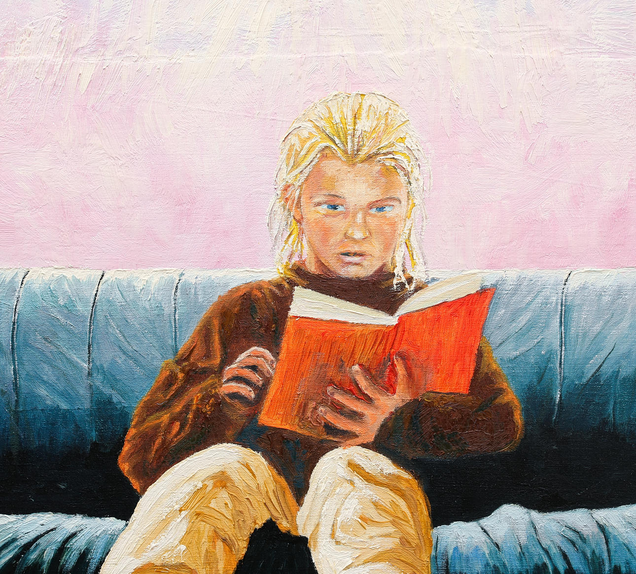 4401254. MISCHA ROSIC. Oil on panel, reading boy on sofa, signed.