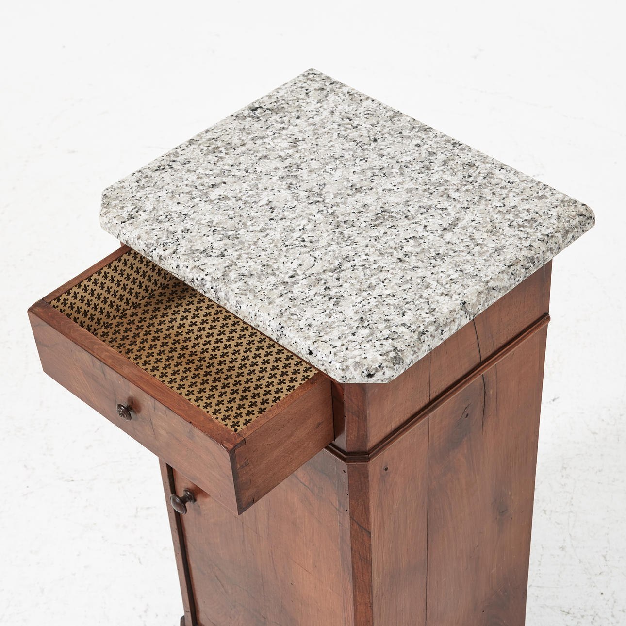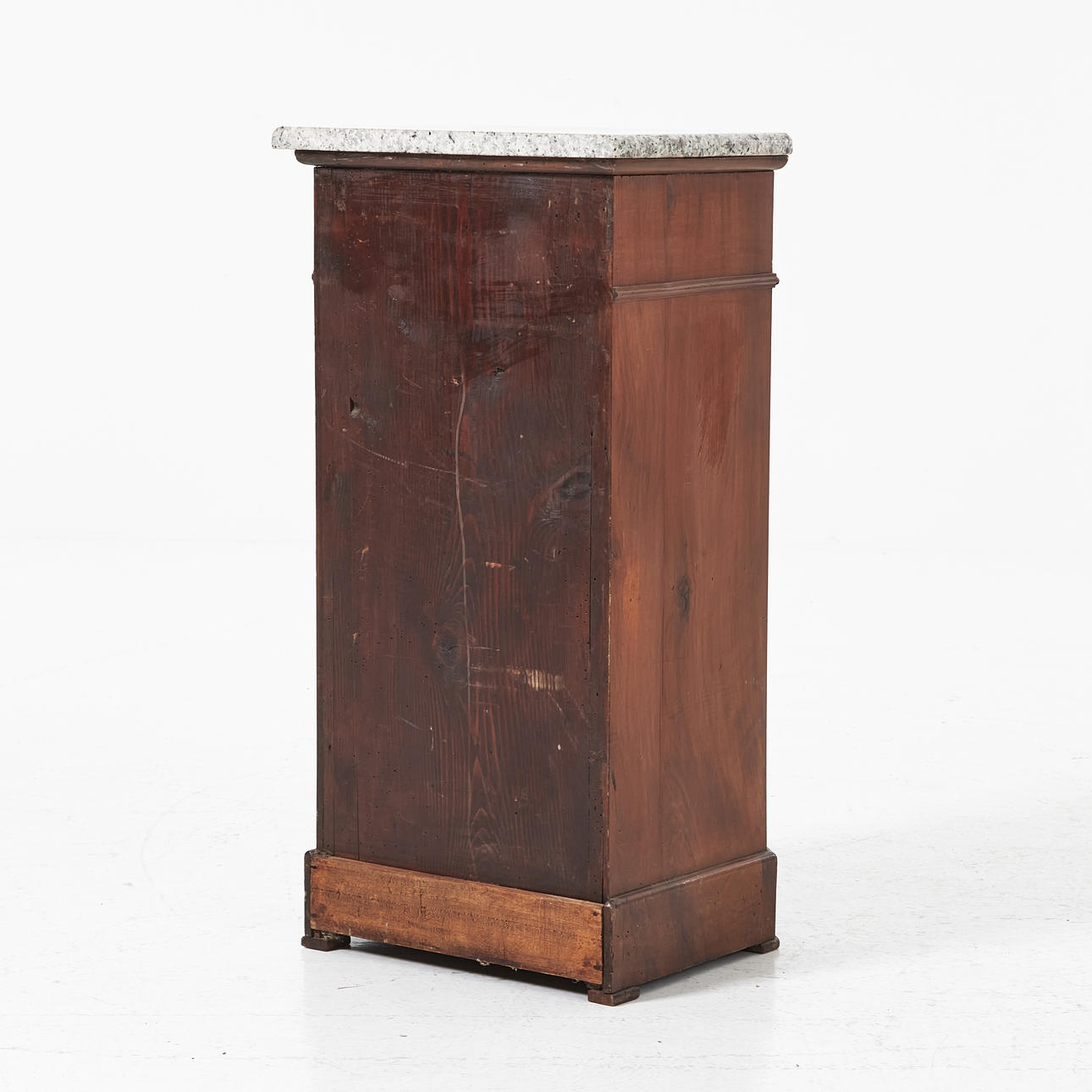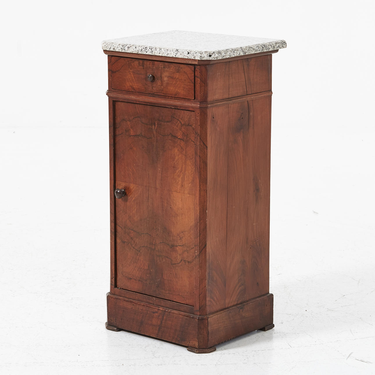 Plate in light stone, dark stained wood, drawer, cabinet with shelf, dimensions approx. 72, 32 x 42 cm.