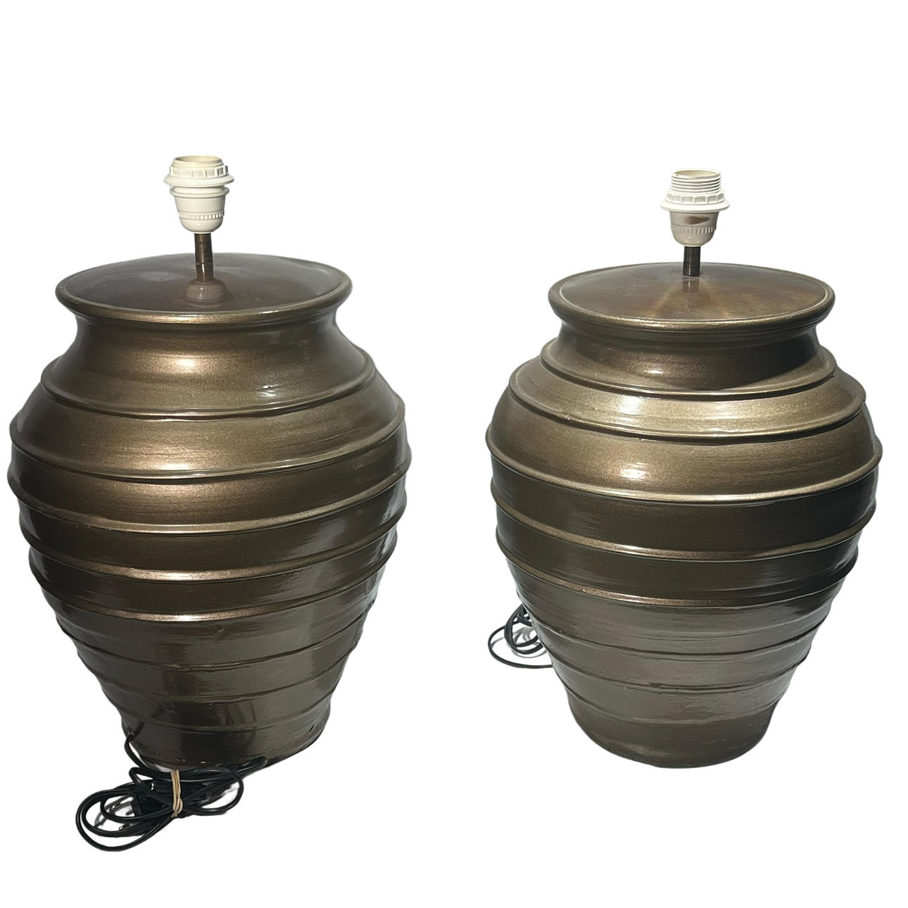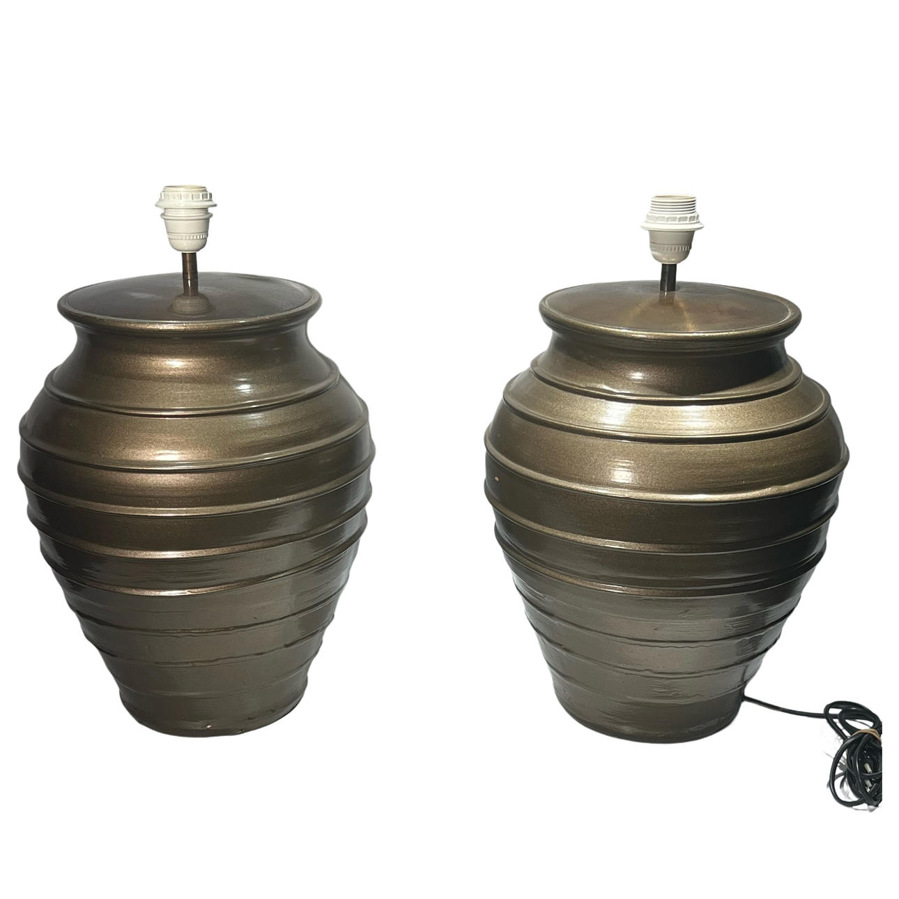 4401796. Pair of glazed ceramic table lamps.
