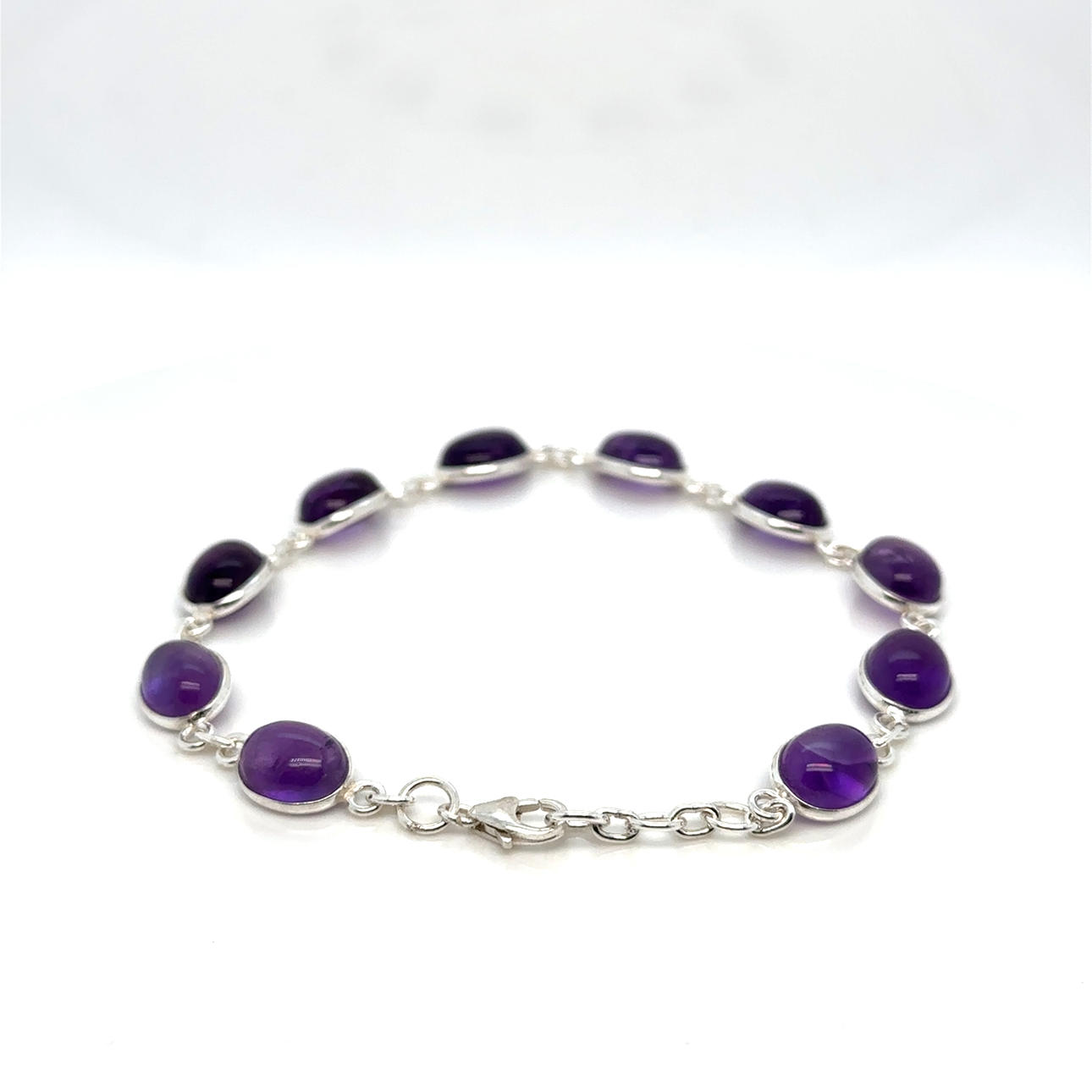 Bracelet in silver with cabochon-cut amethysts approx. 10 x 8 mm, adjustable length.