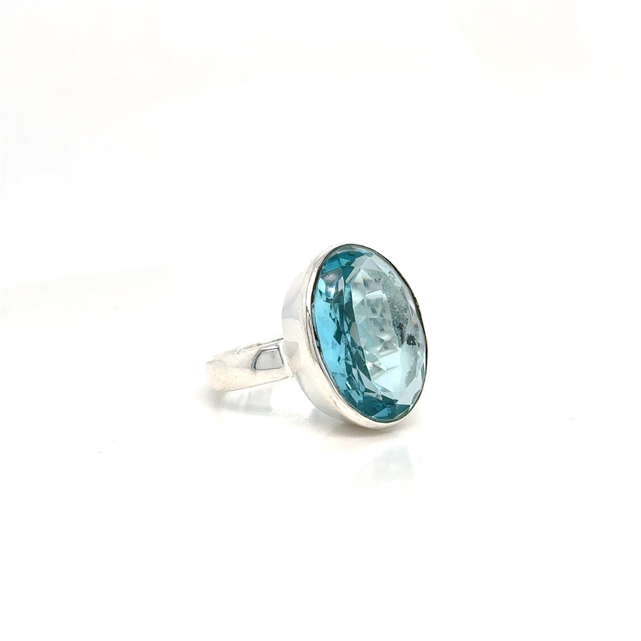 Silver ring with an oval faceted large light blue topaz approx. 19,0 x 13,5 mm, size. about 16.25 mm.
