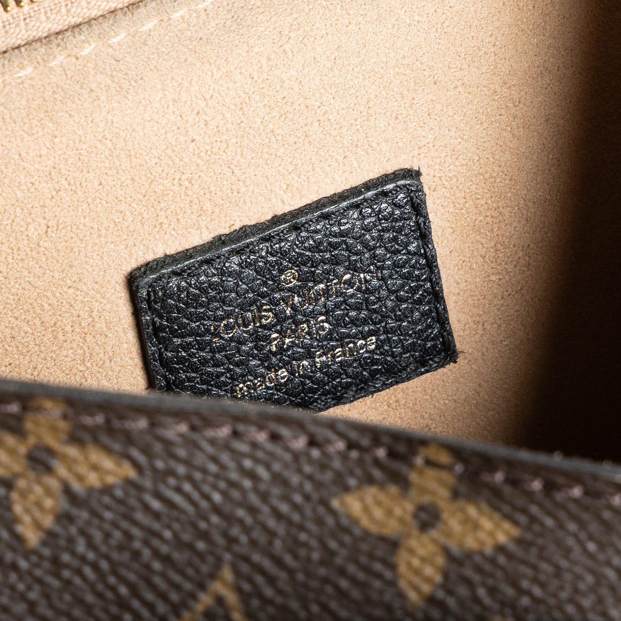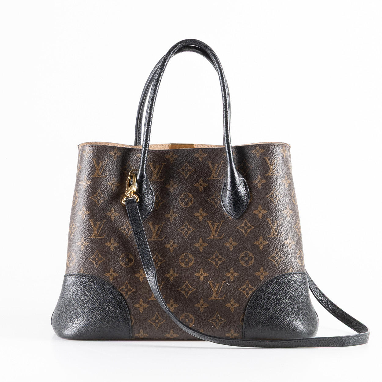 Monogram canvas with black leather details. Buckles in gold-colored metal. Removable shoulder strap. Lined with alcantara. Zippered inner compartment. Marked “LOUIS VUITTON PARIS made in France” AR2146 (manufactured 2016). Shoulder strap approx. 40 cm. Approx. 34 x 26 x 15 cm.