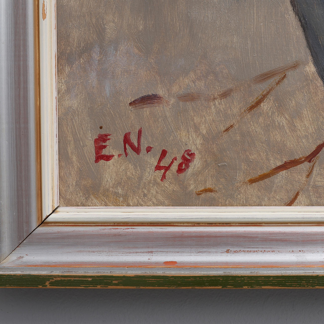 Signed E. N, dated 48. Frame dimensions 72 x 81 cm, daybed dimensions 60 x 69 cm.