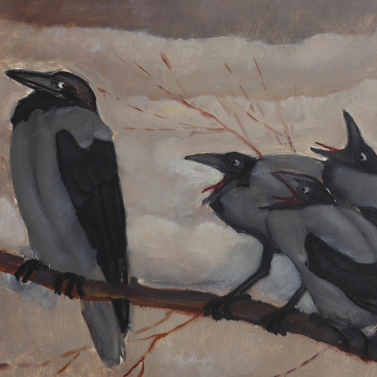 ERNST NORLIND. CROWS, OIL ON PANEL.