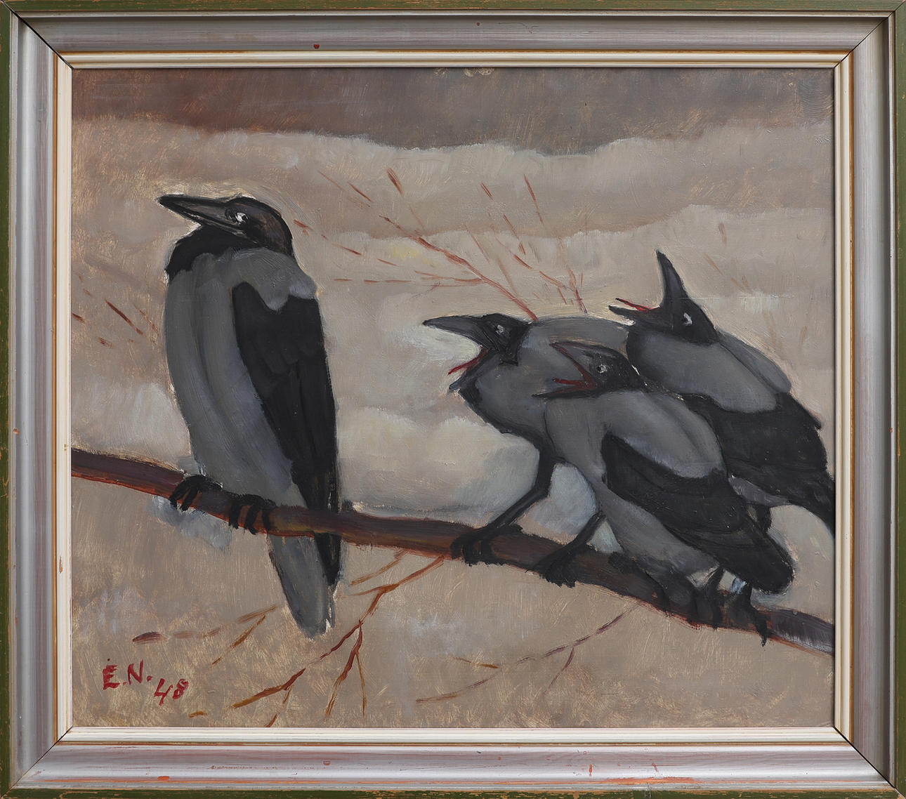 4402330. ERNST NORLIND. CROWS, OIL ON PANEL.