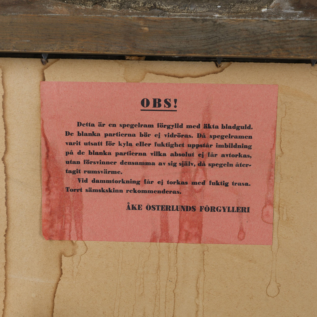 Gold plated with gold leaf, label on back Dimensions 108x48 cm.