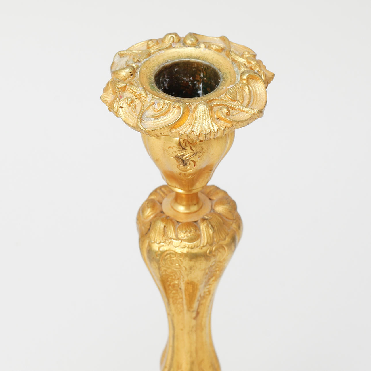 Gilded brass Decor of volutes and acanthus leaves. Contoured foot. Height 24 cm.