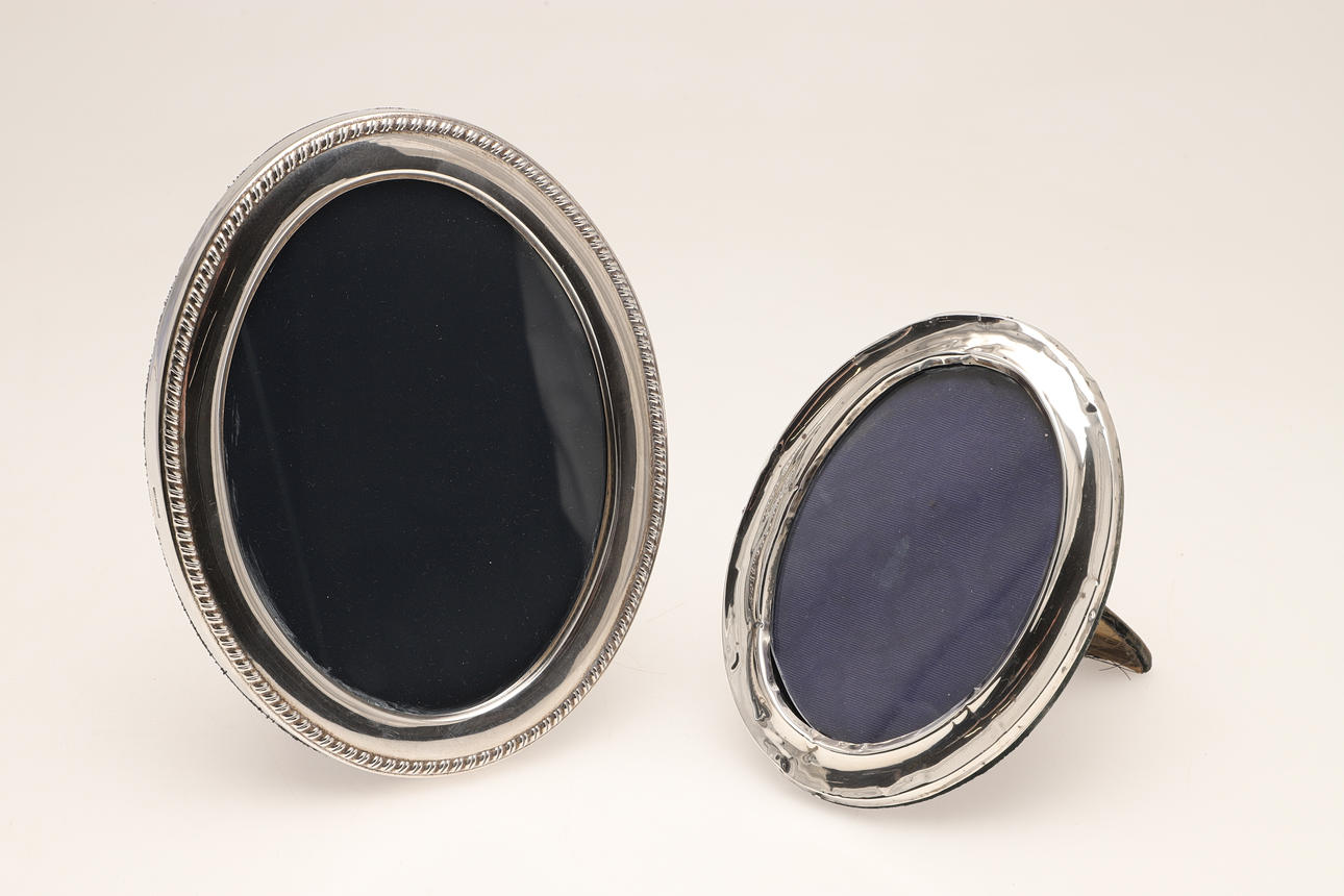 Two oval shape, the larger with gadrooned border, hallmarked Mappin & Webb, London 1995, 22.5cm high x 17.5cm wide, etc..