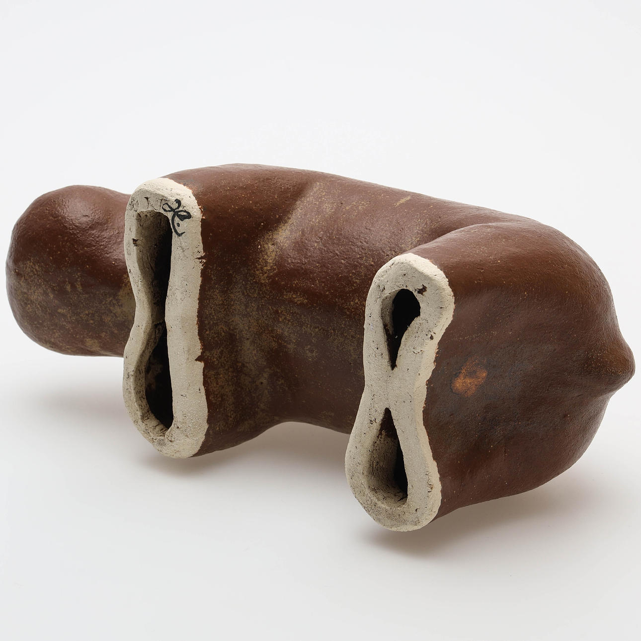 A SCULPTURE, glazed ceramic, hippopotamus, signed.