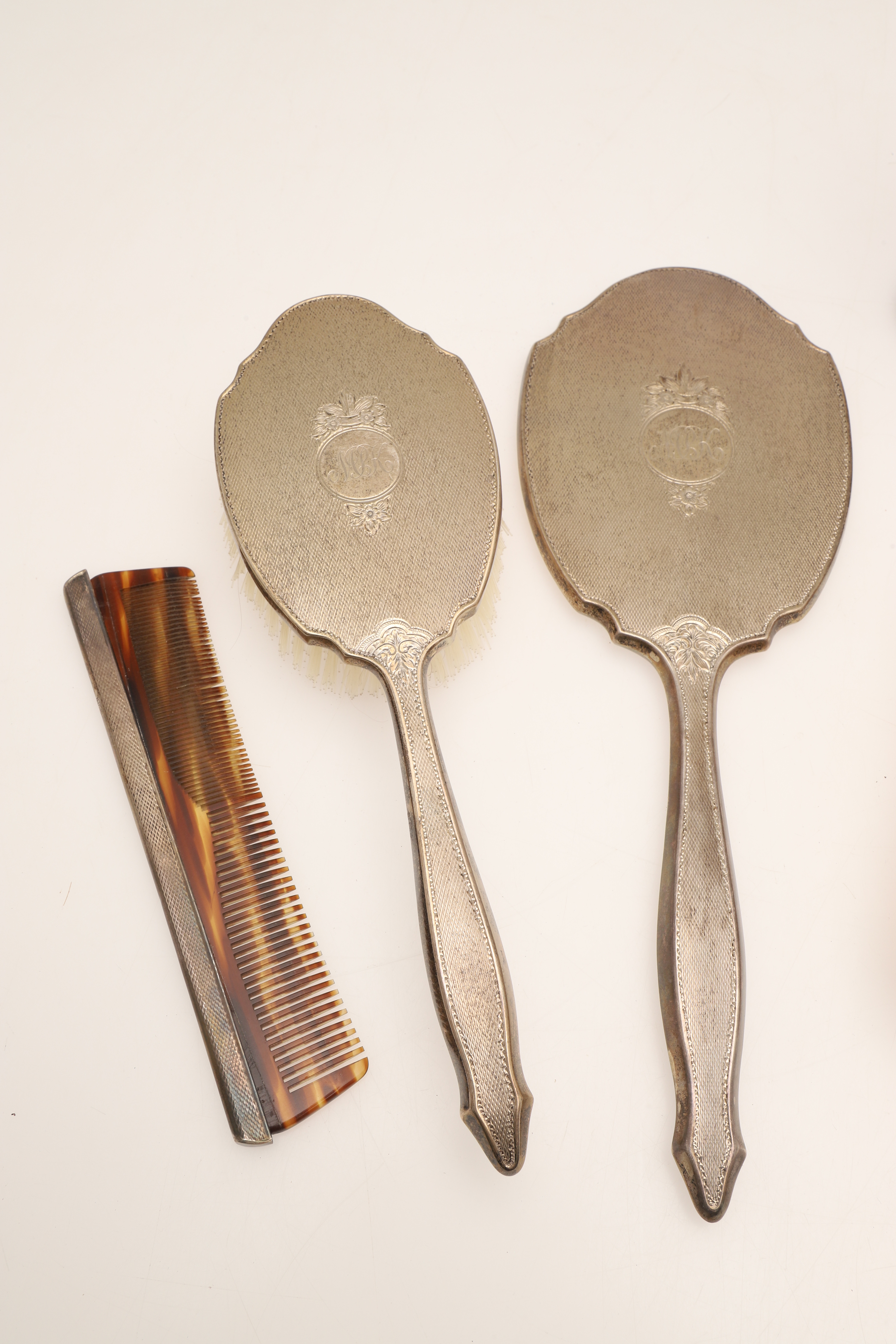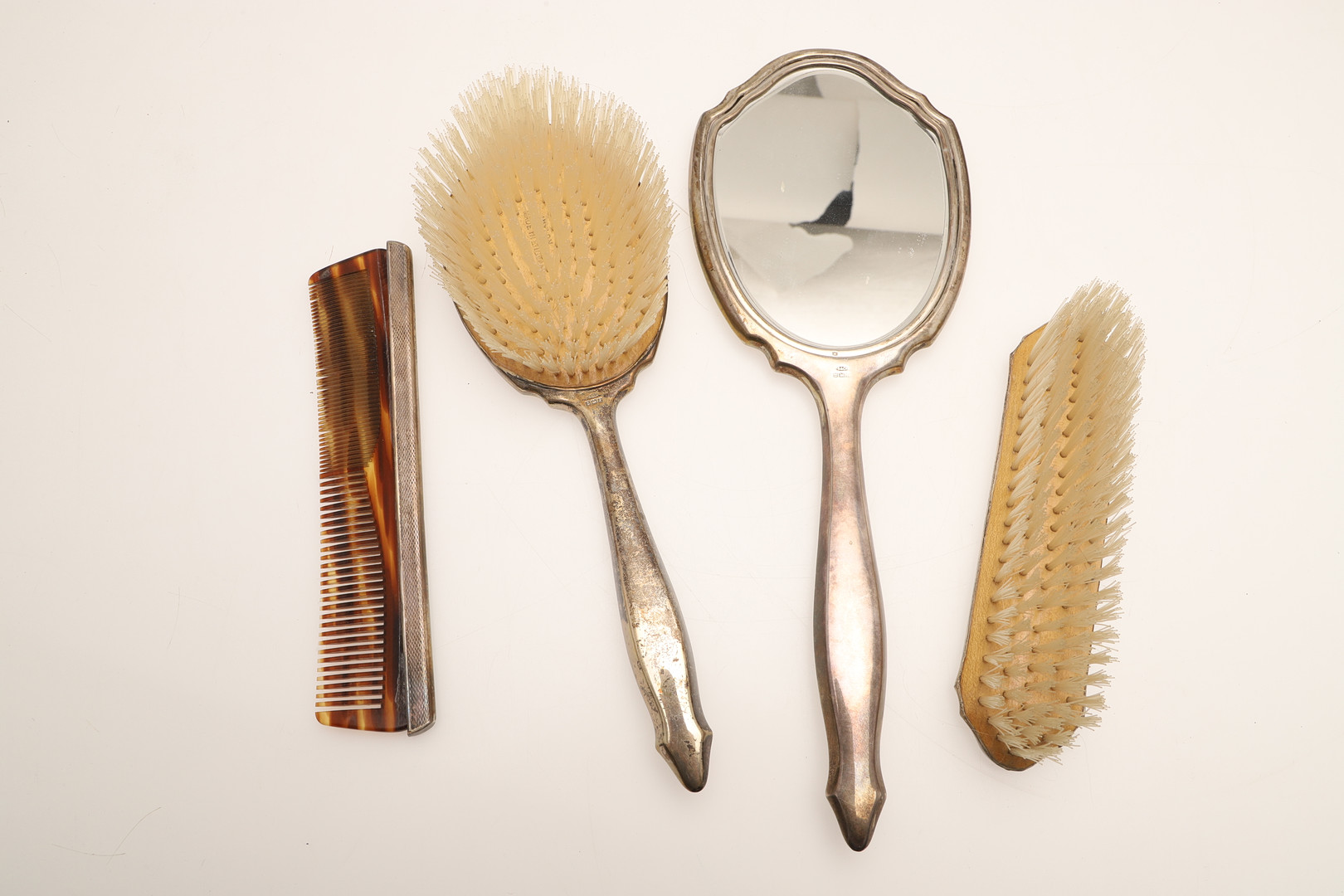 4404047. A FOUR PIECE SILVER BACKED DRESSING TABLE SET ETC.