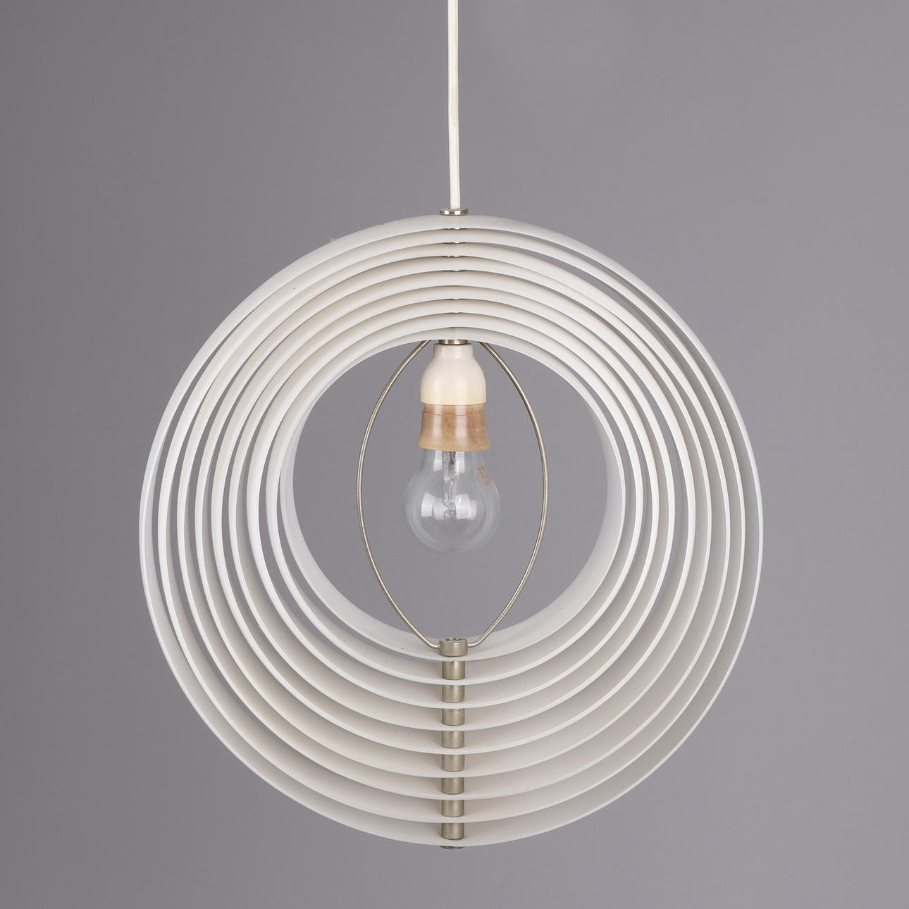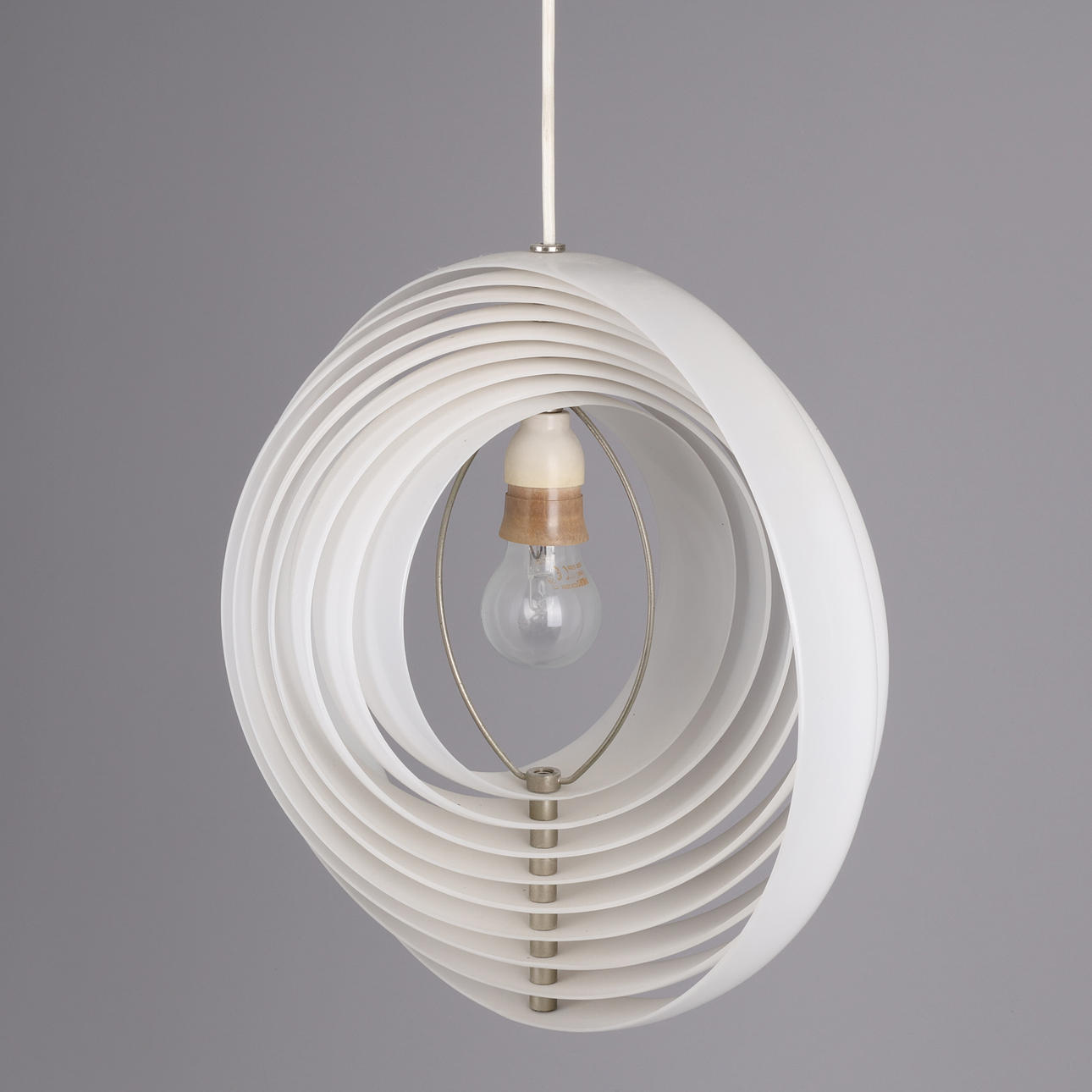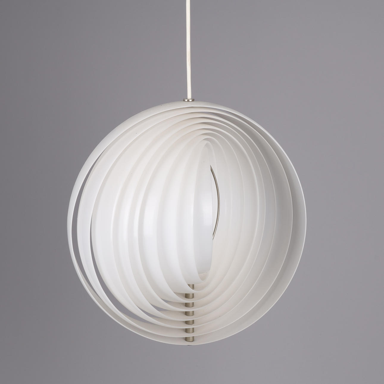 Verner Panton. “Moon” ceiling lamp/pendant with metal frame and moving rings made of opal acrylic.