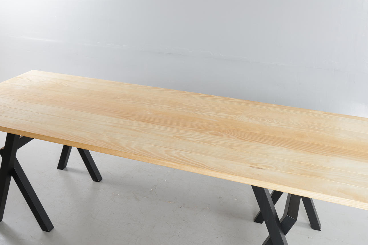 4404207. SØREN ULRIK PETERSEN. Long table, plate on two racks, solid ash.