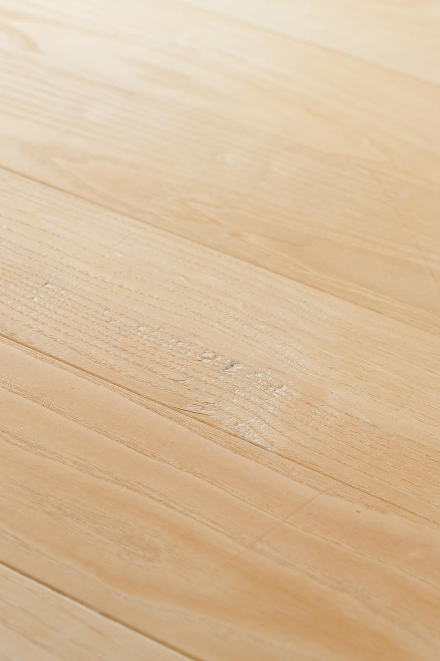 Elm. wear and tear, scratches, small nicks and marks on the table top and legs.