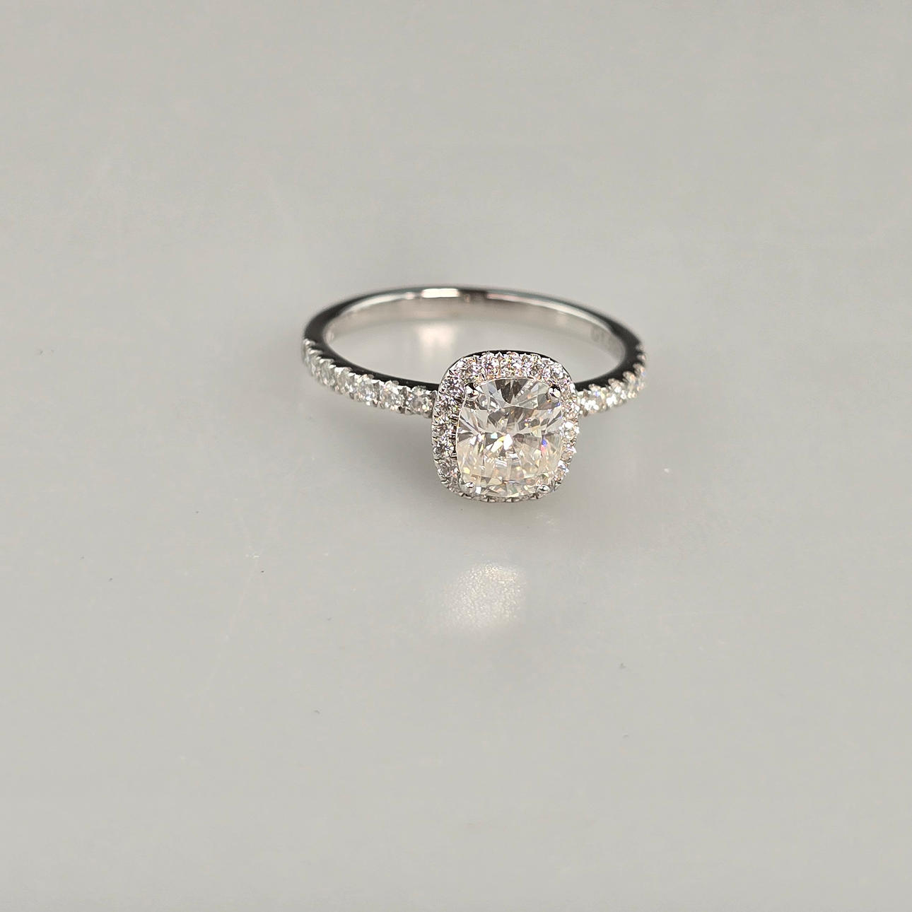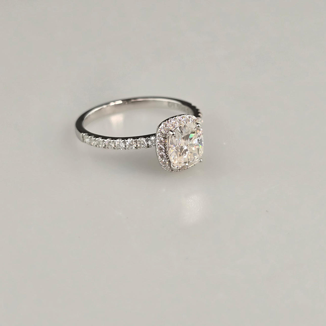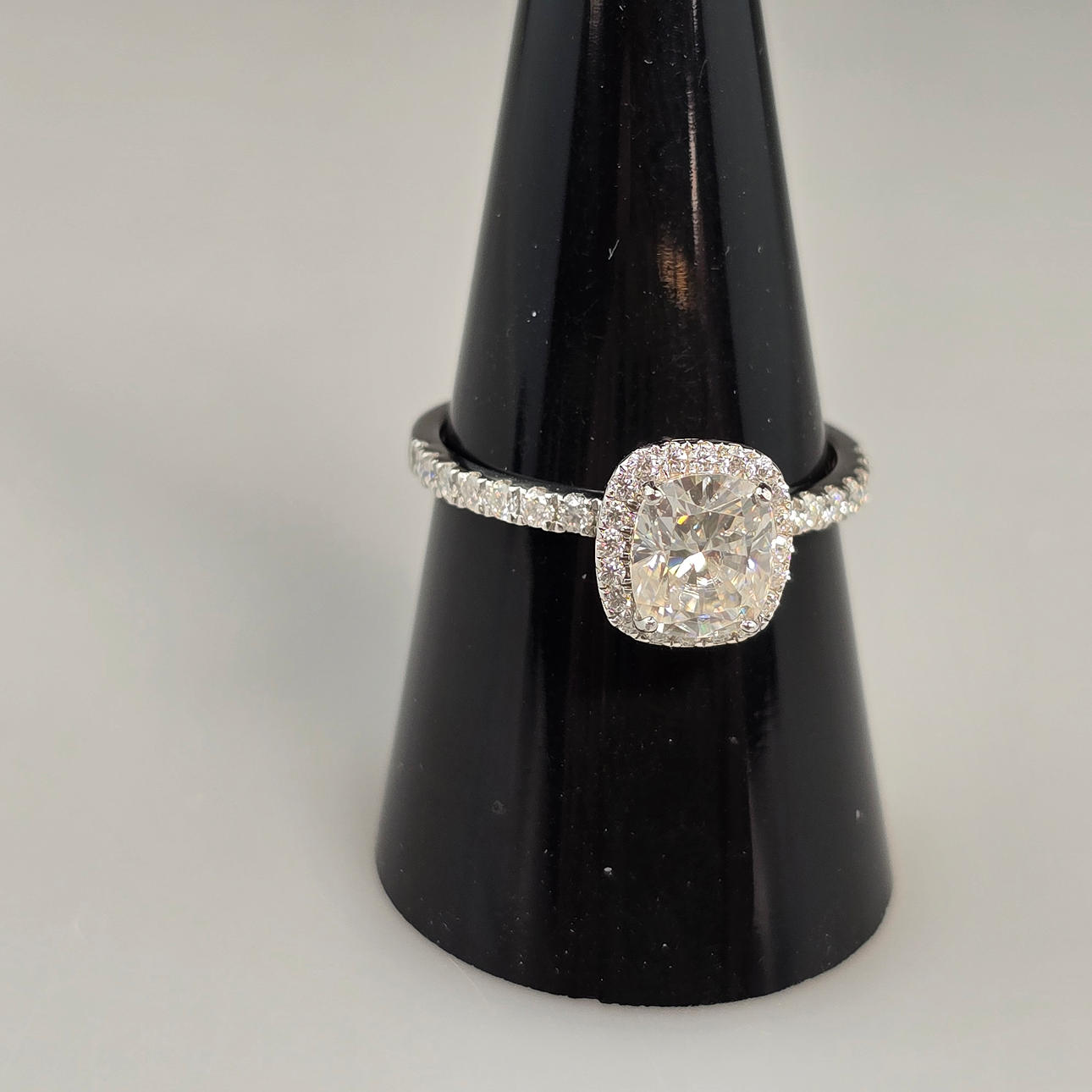 Ring - 925 sterling silver, moissanite cushion from ca. 1.50 ct. ,