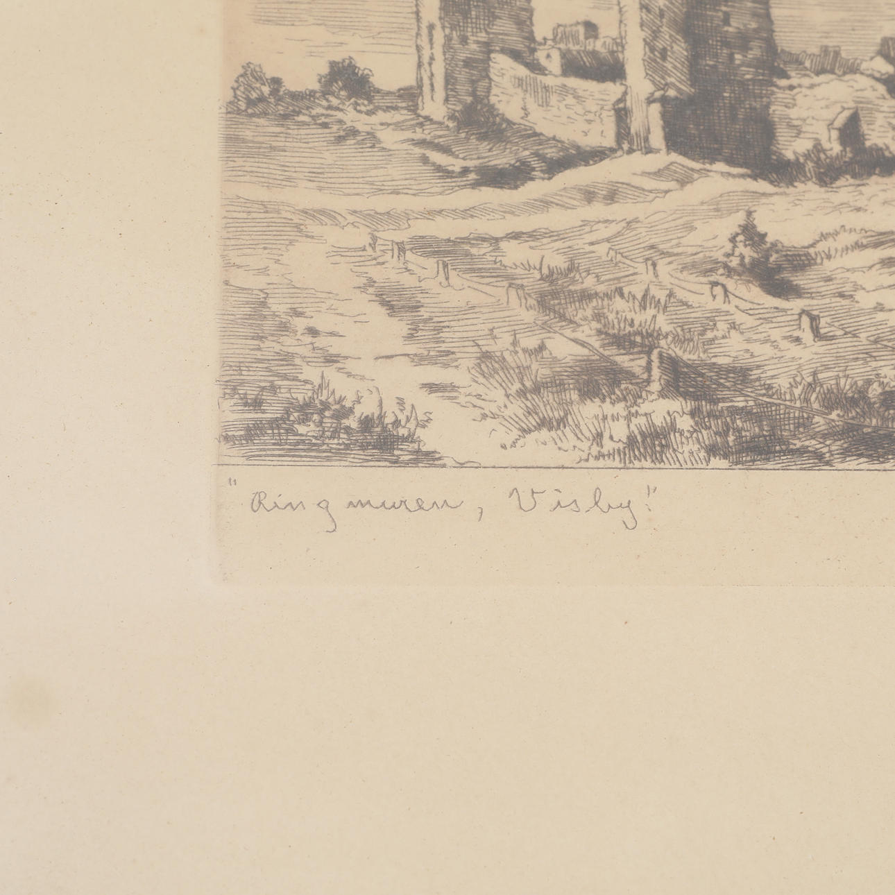 ERNST HÄLLGREN. original etching, signed, "Ringmur Visby”.