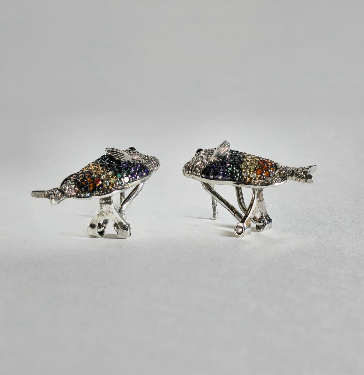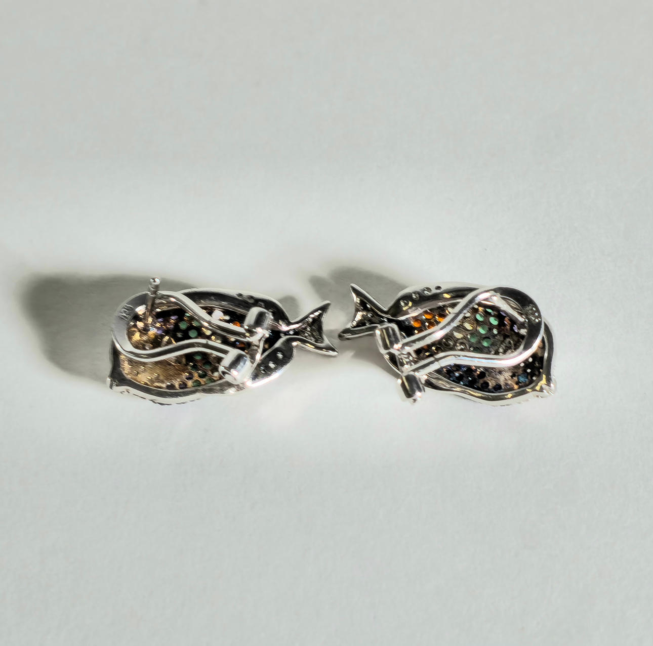 4404996. SILVER EARRINGS WITH FISH WITH COLORED ZIRCONS.