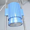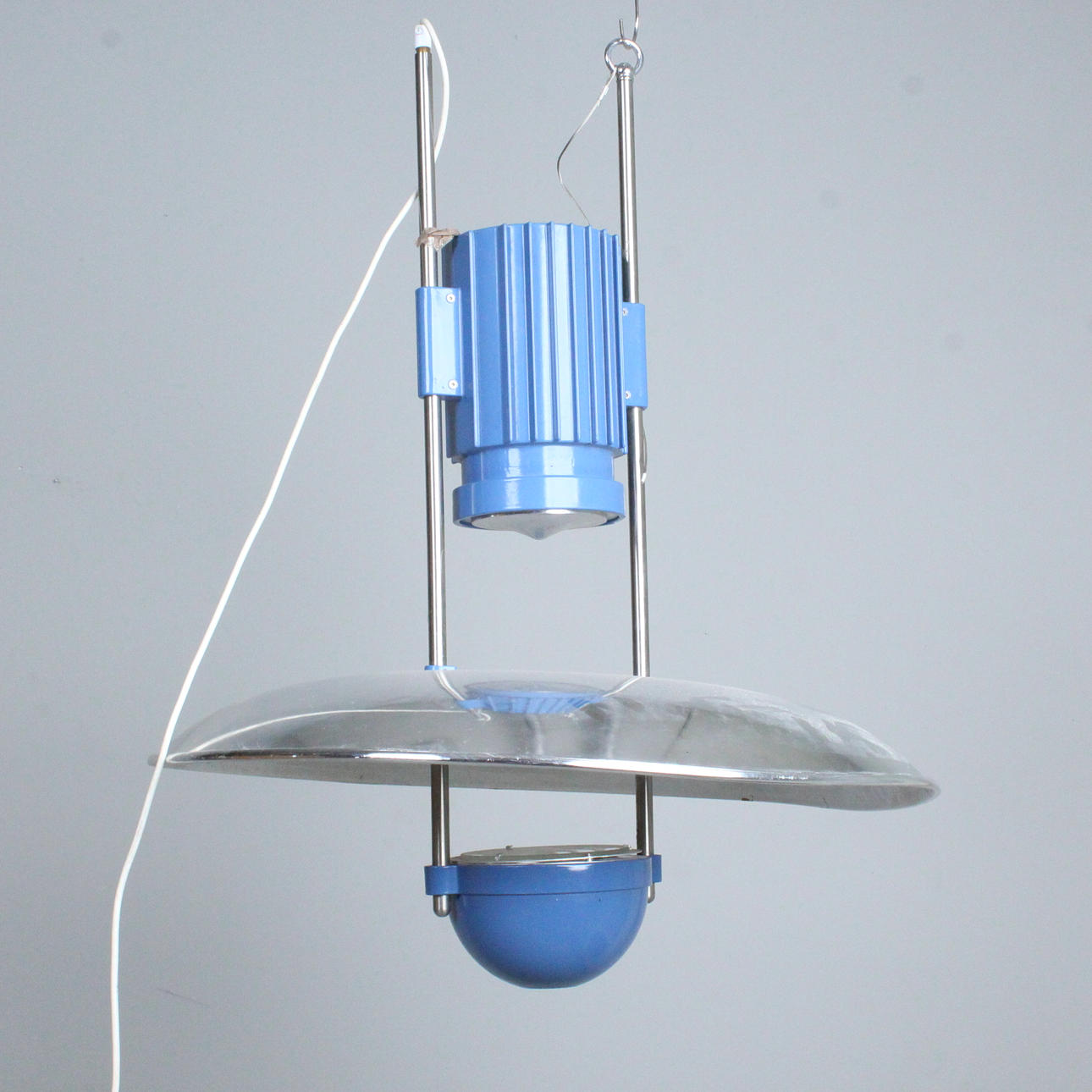Industrial hanging lamp/ pendant lamp, construction made of metal, partly painted blue,