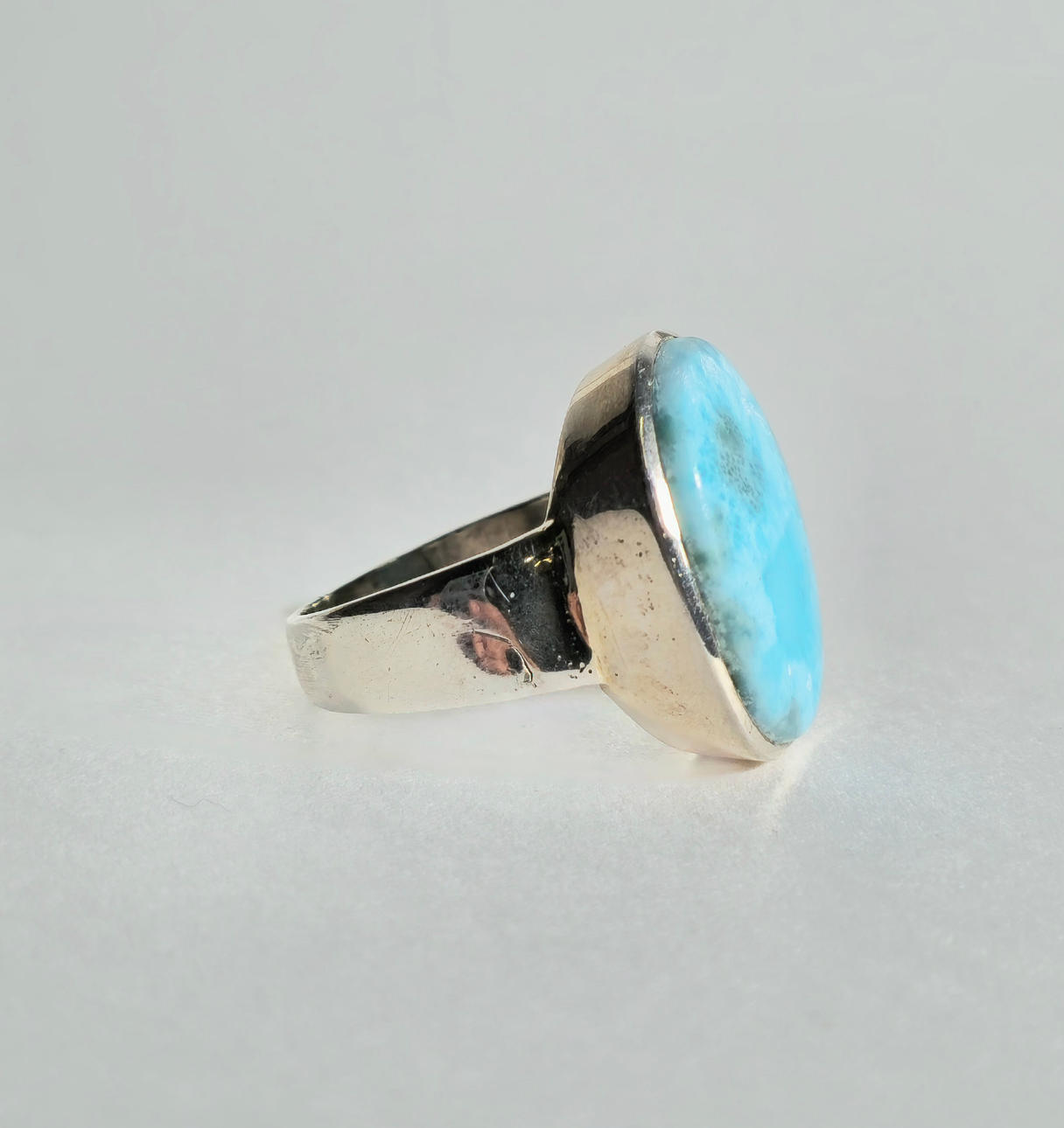4405210. SILVER RING WITH OVAL LARIMAR.
