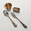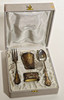 4405380. COMMUNION GAME. CUP, NAPKIN HOLDER, SPOON AND FORK.