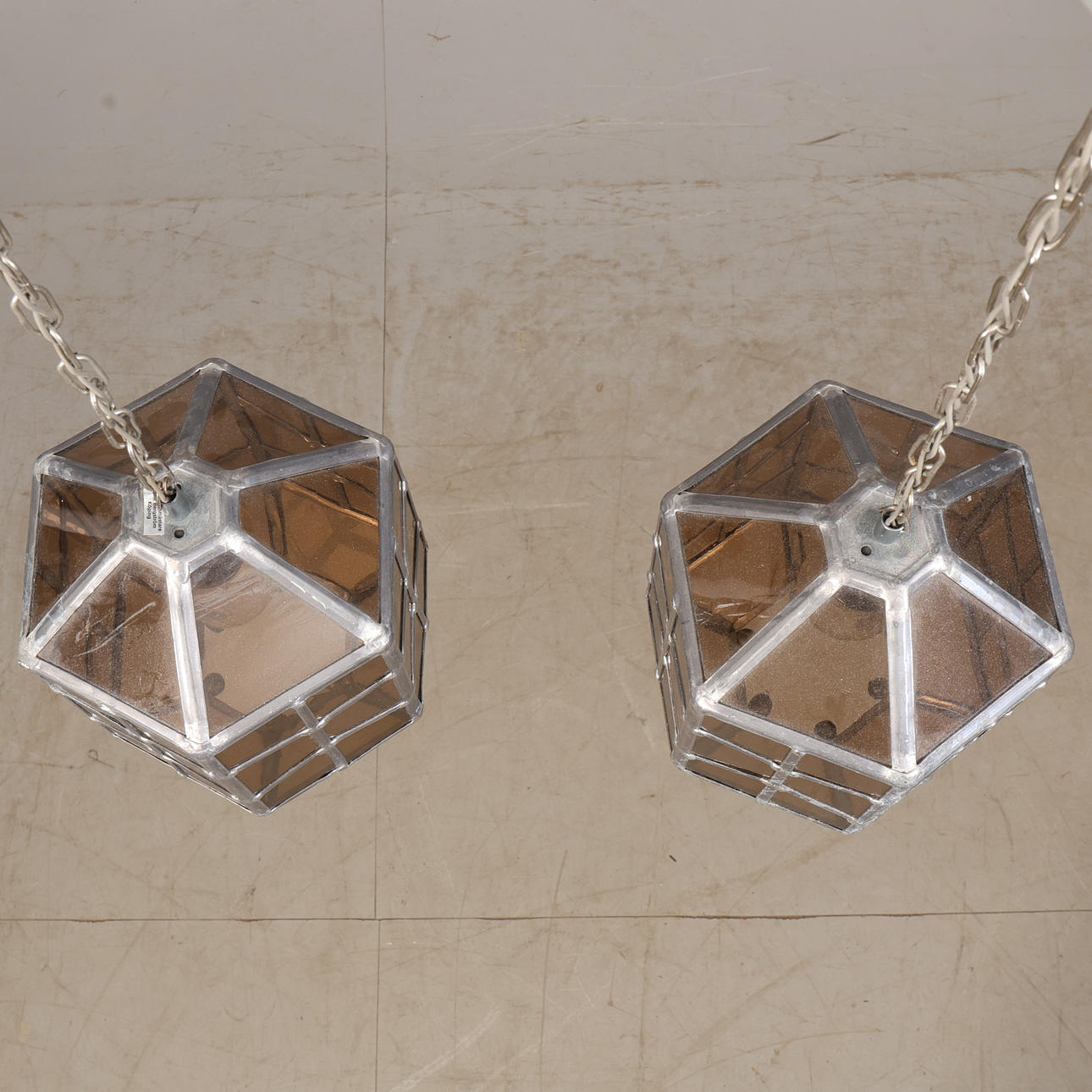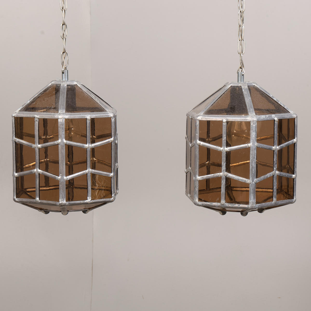 ERIK BERGSTRÖM. Ceiling lights, a pair, stained glass, Köping.