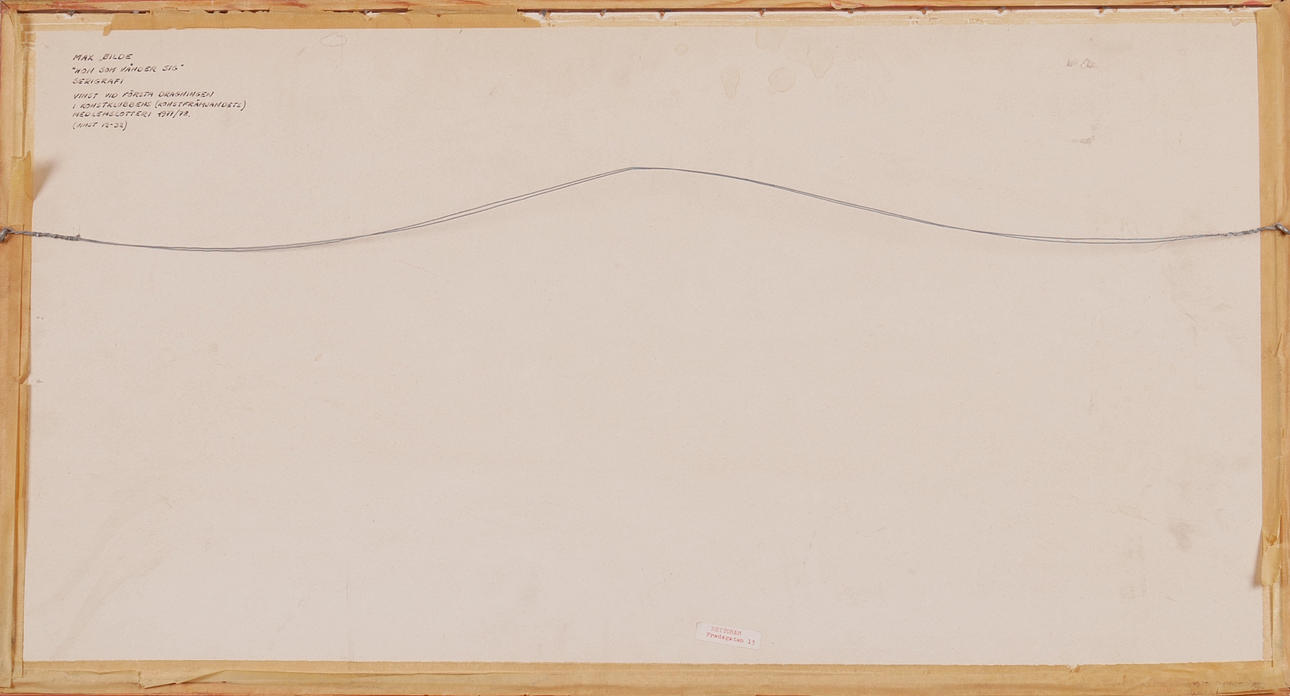 Image dimensions 34x74 cm. Frame dimensions 48x89 cm.