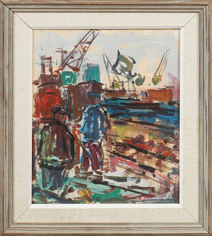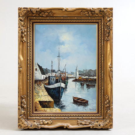 4405960. OIDENTIFIERAD KONSTNÄR. Harbour motif, oil on canvas, signed G. Carlsson and dated 81.
