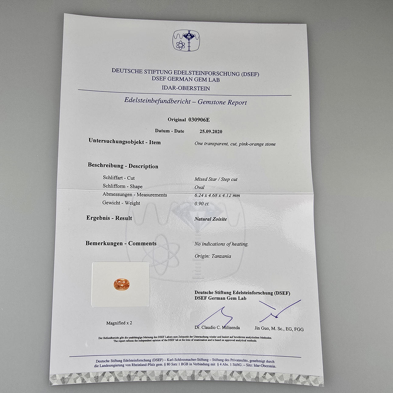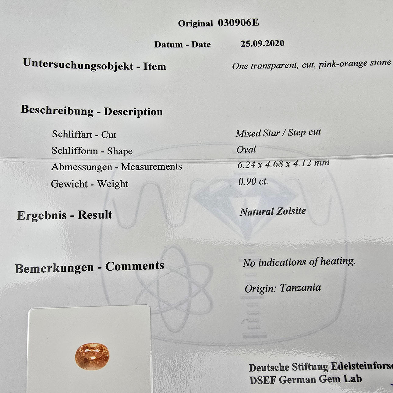 Gemstone findings report - German Gemstone Research Foundation, Idar-Oberstein, 09/2020.