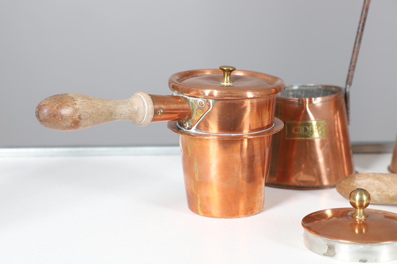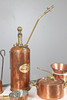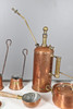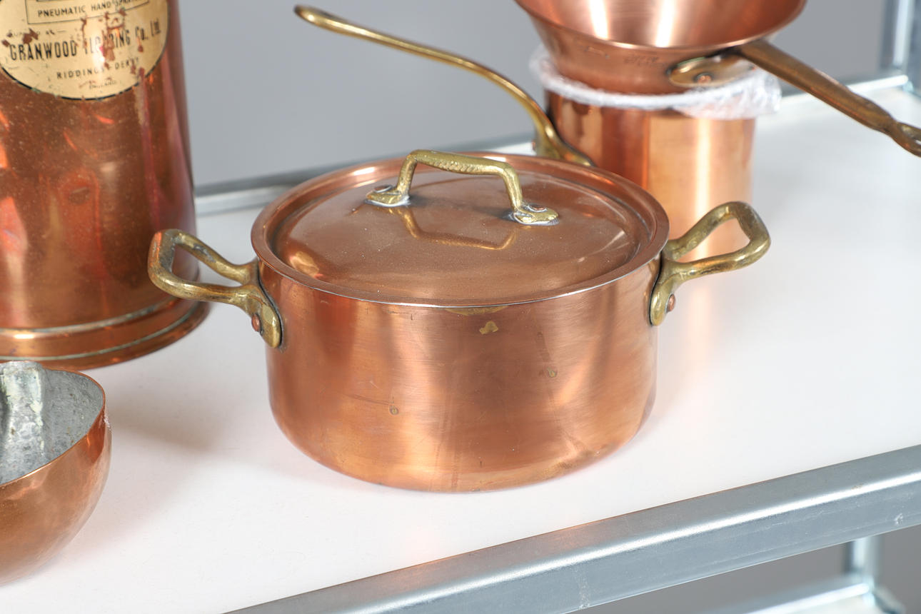 A mixed lot including a Granwood Flooring sprayer, a copper lidded pan with brass handles, and other items. Sprayer 48cms high overall.