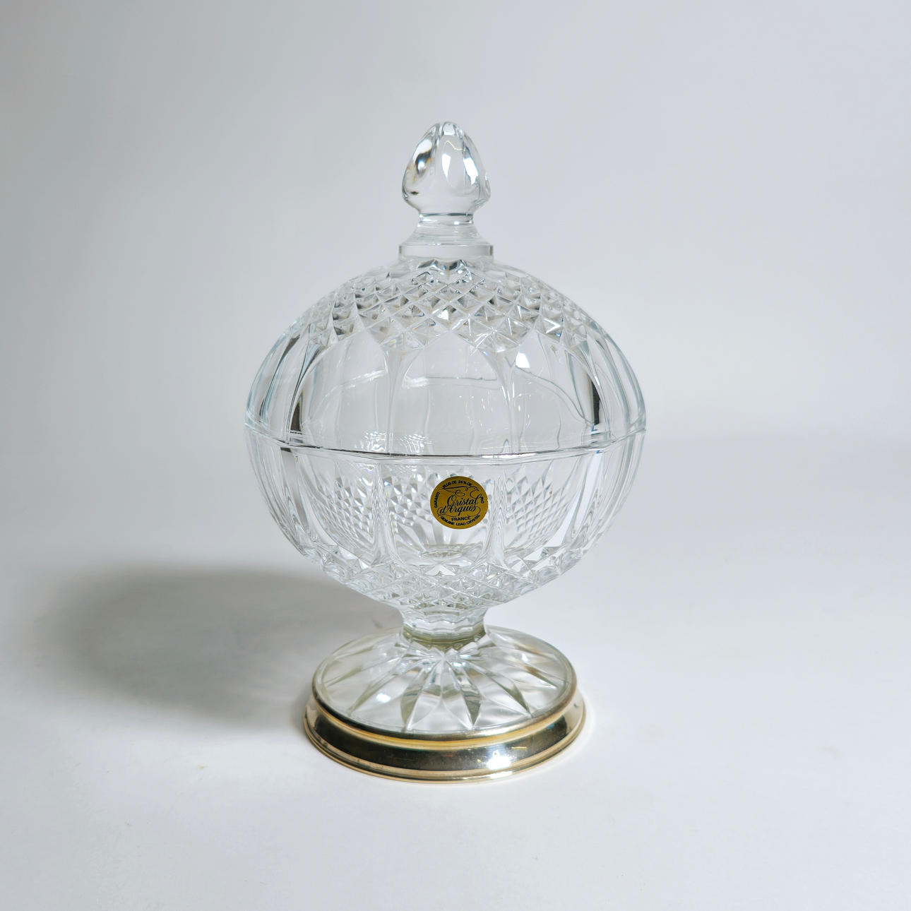 DARQUES GLASS CANDY BOX WITH SILVER BASE.