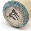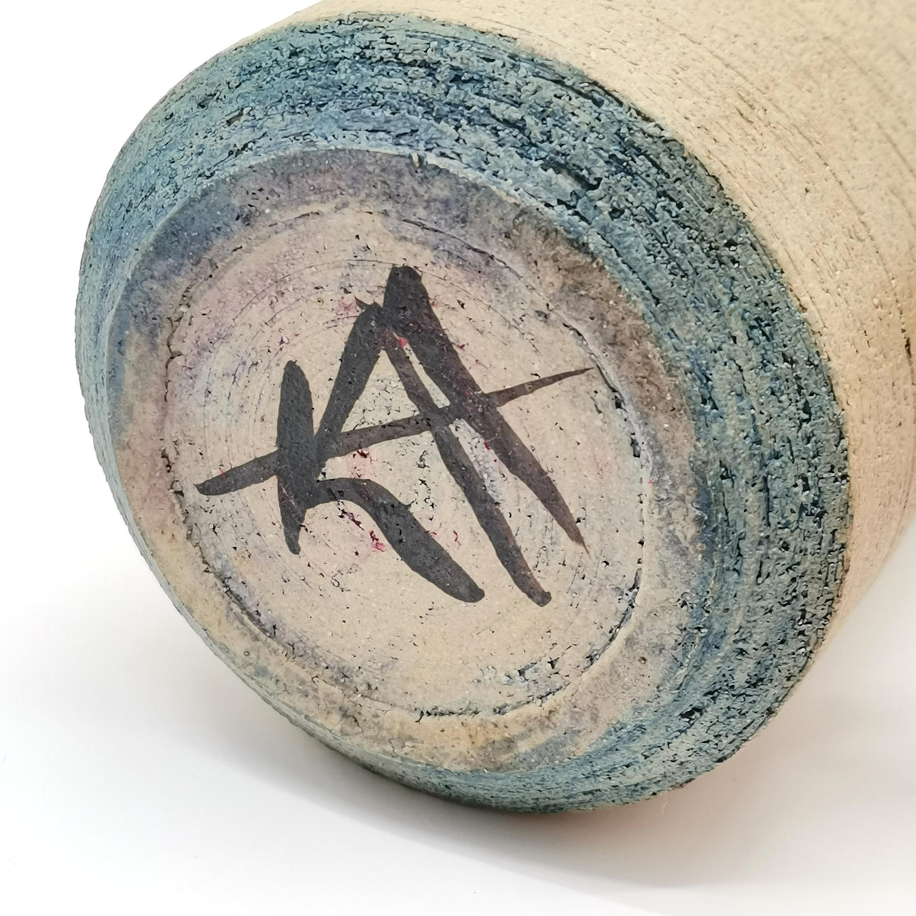 Studio pottery vase with unusual squared inset top signed KA - 19cm high x 10cm diameter.