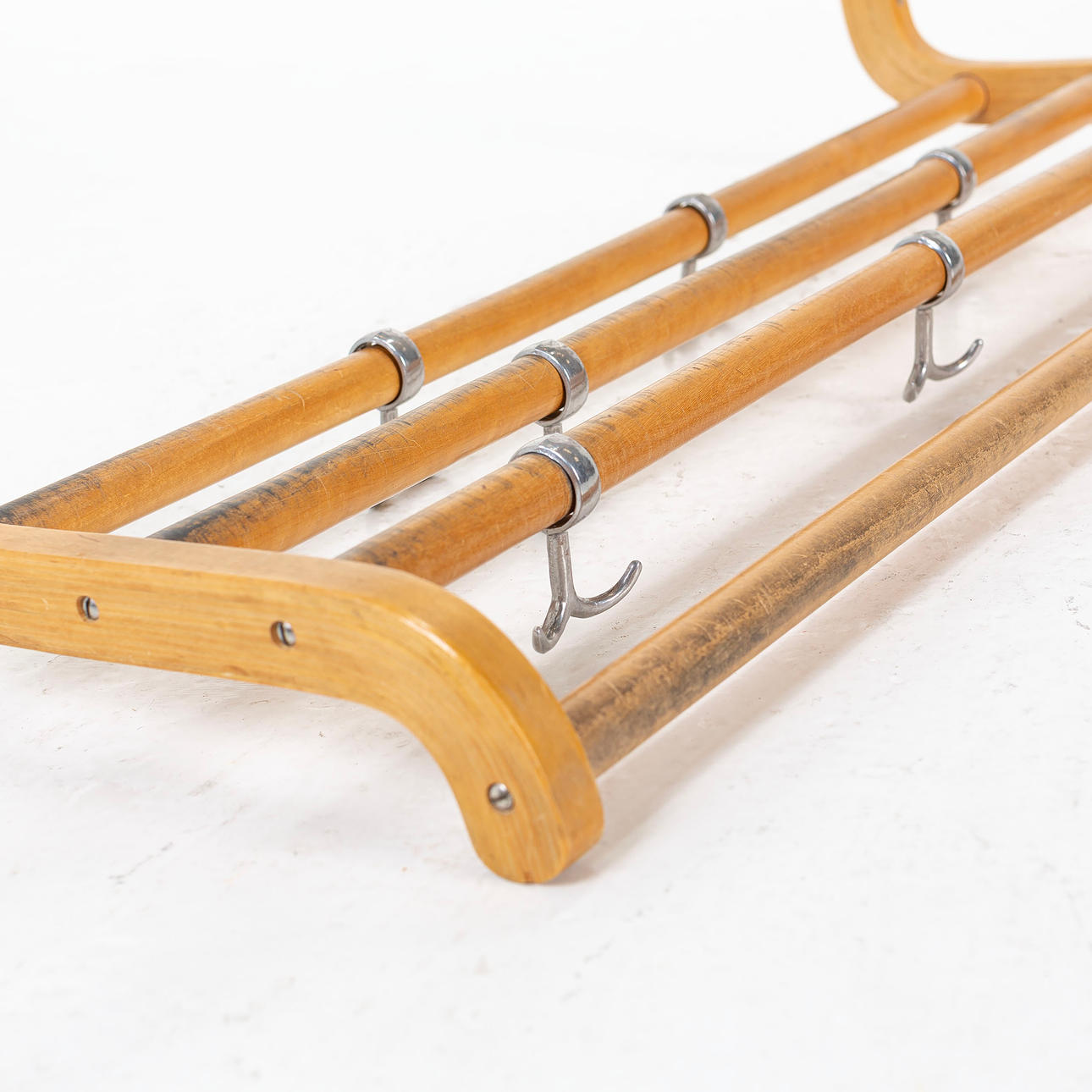 4407771. A hat shelf, birch, light metal, funky. 1940s.