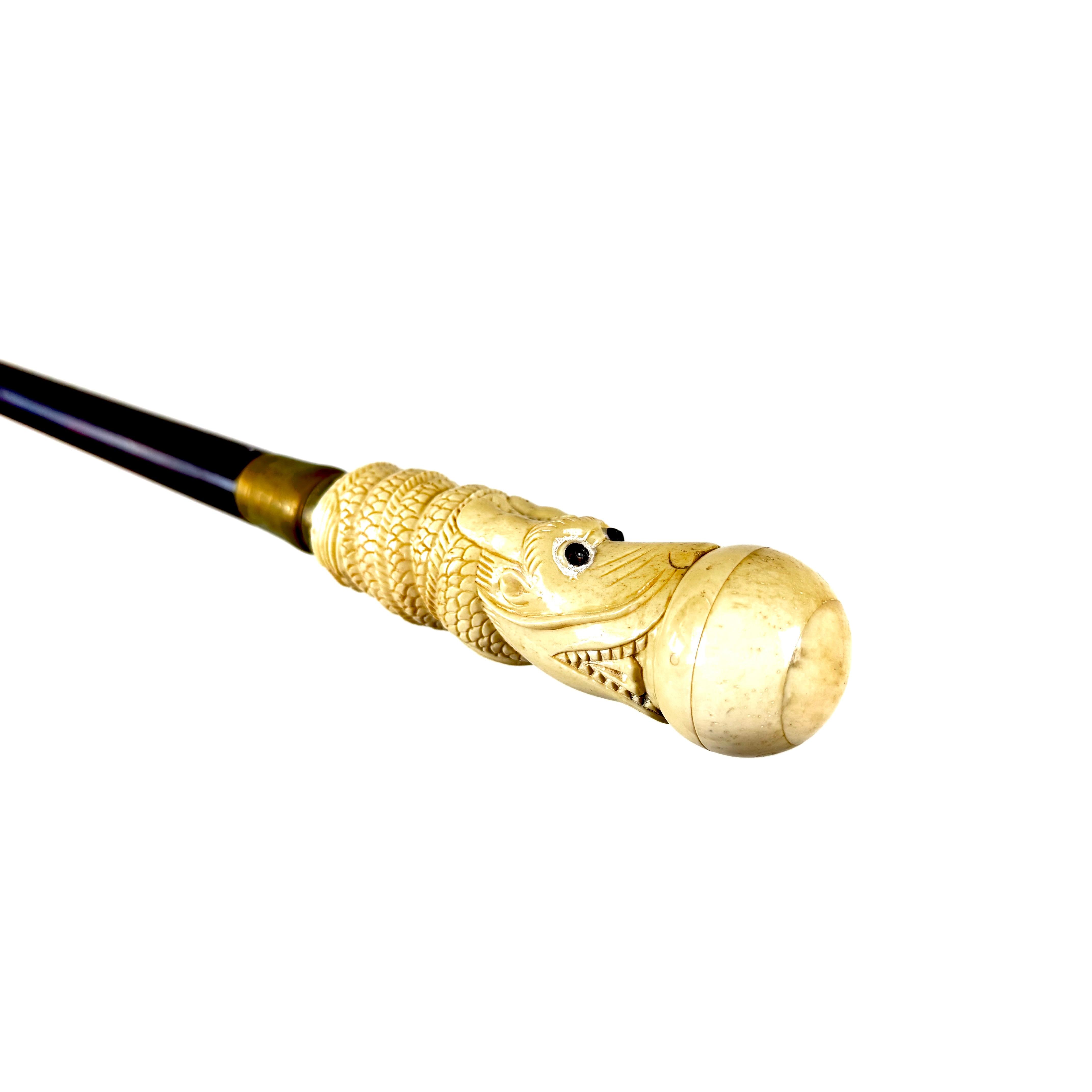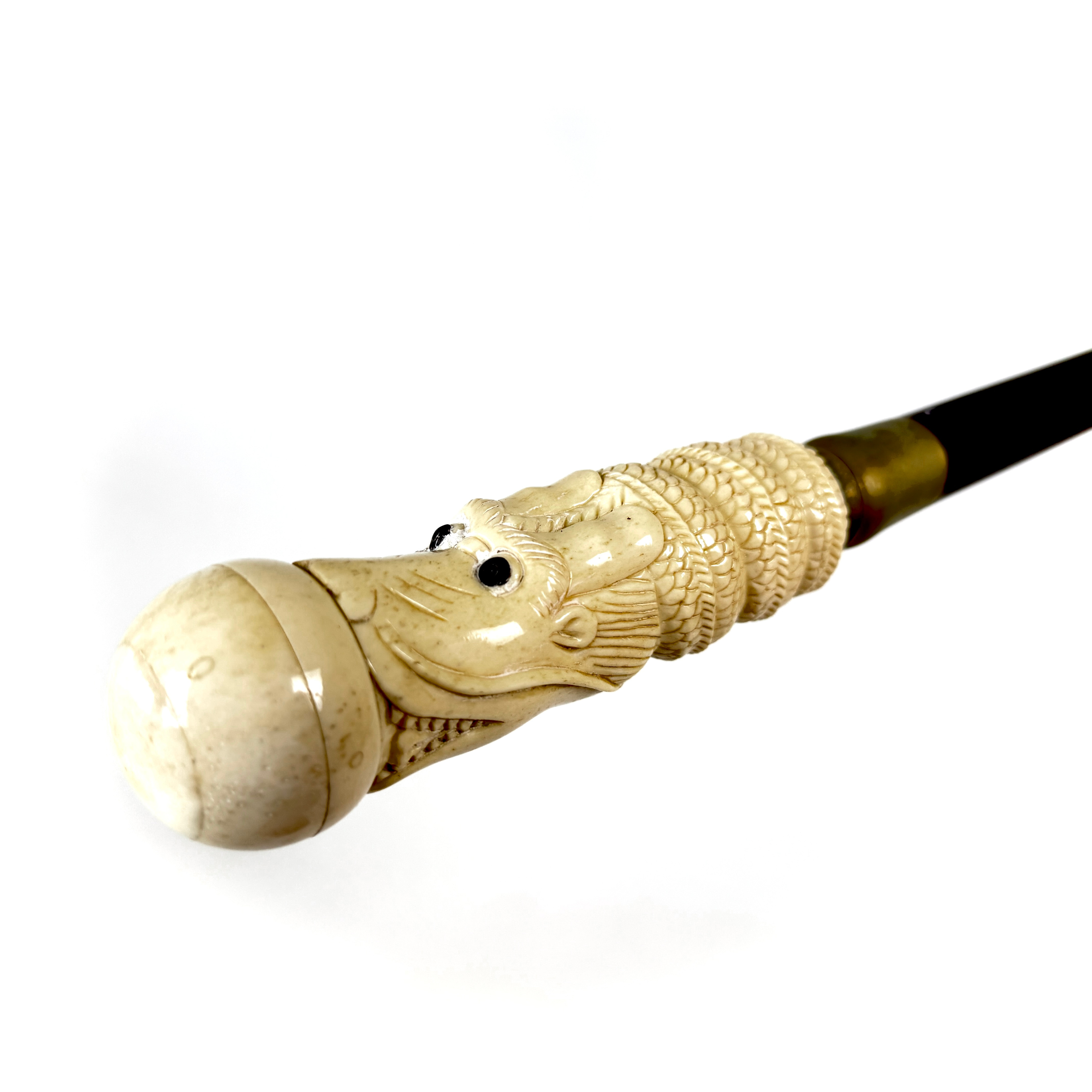 4407899. CARVED BONE HANDLED WALKING STICK.